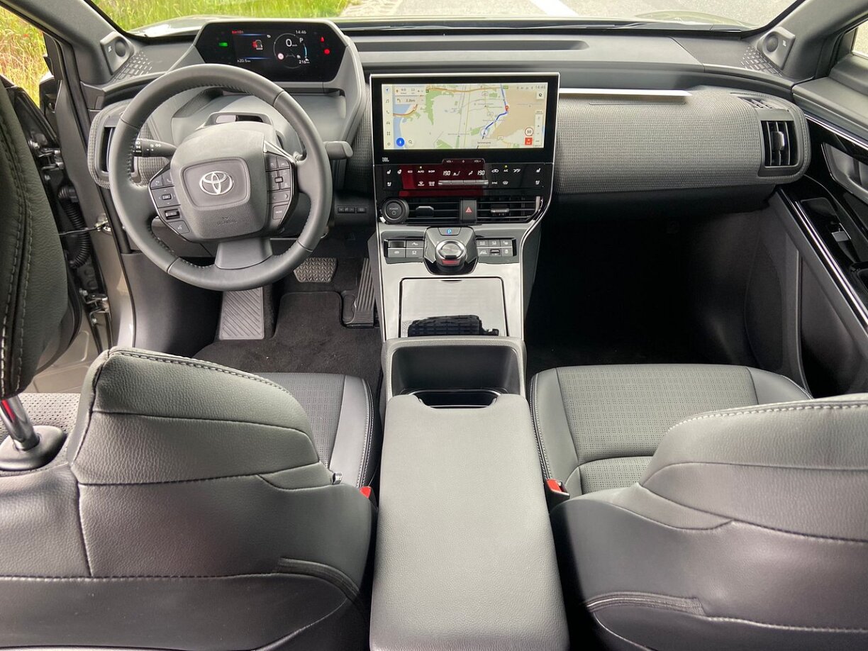 Toyota ass bekannt fir praktesch Autoen ze bauen. Dat ass hinne mat hirem Crossover och zum gréissten Deel gelongen. Genuch Plaz vir an hannen. Leider ass awer ze vill haarde Plastik verschafft ginn. Allerdéngs muss ee soen, datt deen net ufänkt mat jiipsen. Jiddwerfalls net bei engem neien Auto, dee logescherweis am Test zu Verfügung stoung. Beim bZ4X ginn et awer och e puer minus Punkten. An där Sëtzpositioun, déi ech am Auto hat, hunn ech de Gros vum Display viru mir net gesinn. Iwwer eng Händschekëscht, hunn ech mir bis elo ni grouss Kappzerbrieches gemaach. Wann déi awer feelt, da weess ee wat een dovunner huet a wat alles dra passt. Där gëtt et awer keng am bZ4X. D’Erklärungen, firwat dat esou ass, ware vun den Toyota Leit net ganz, bis guer net iwwerzeegend.