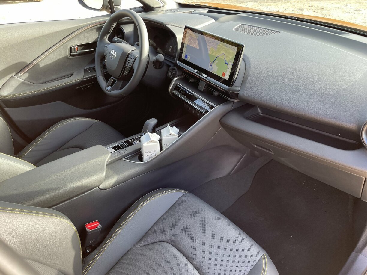 Gutt Plaz huet een awer nëmmen, wann ee Chauffer oder Bäifuerer ass. Gestéiert hu mech kuerz a schmuel geschnidde Sëtzer, an d’Réckbänk, déi éischter fir kleng Mënsche geduecht ass. Duerch déi Coupé-typesch flaach Daachlinn kann ee sech de Kapp beim eraklamme stoussen an d’Beefräiheet ass limitéiert. Vun Toyota heescht et, d’Zilgrupp wieren éischter Koppelen ouni Kanner, fir déi dat kee Critère wier. Den typesche Client géif sech éischter fir d’Nohaltegkeet interesséieren.