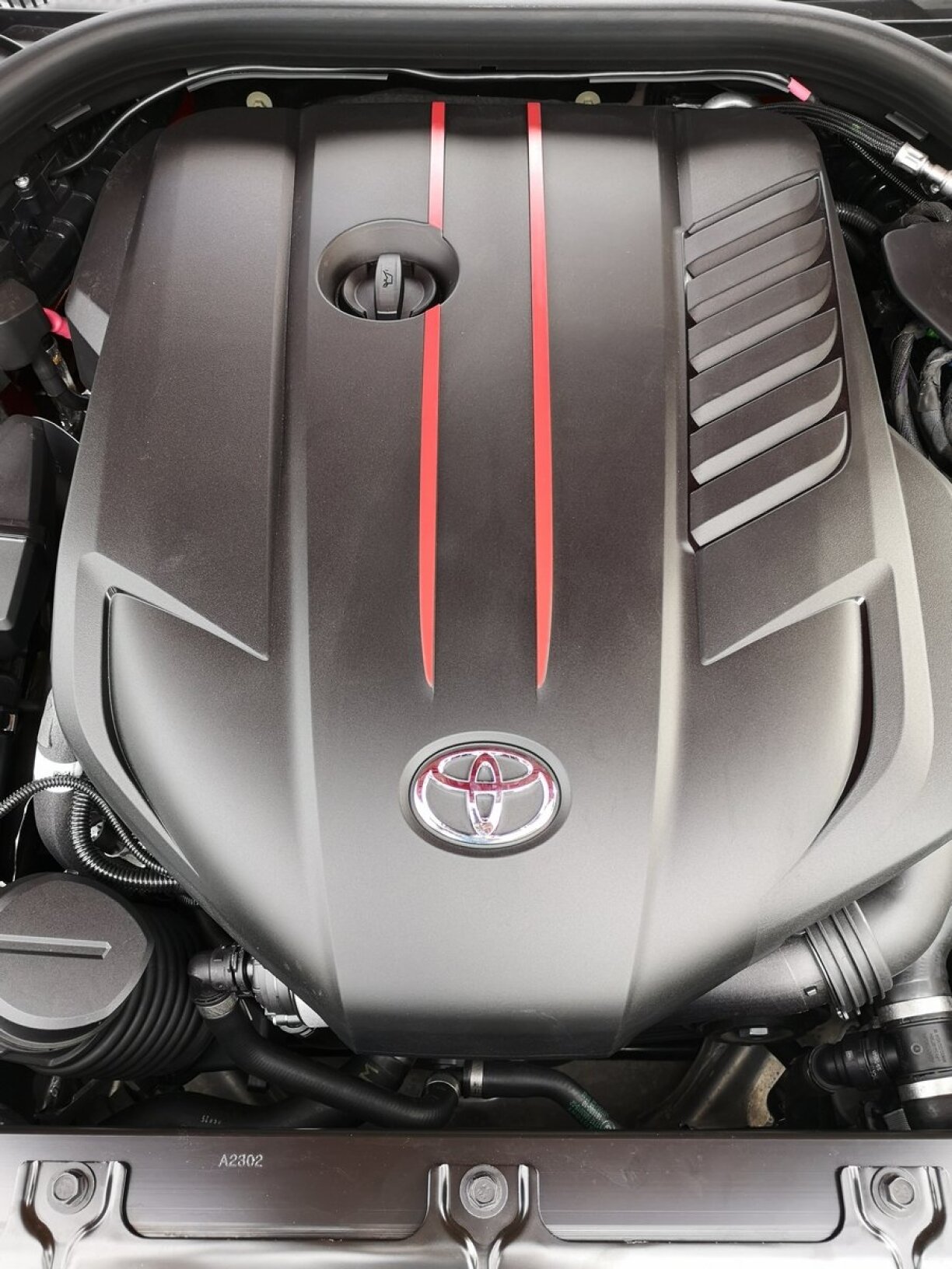 Jo, Toyota a BMW kooperéiere jo schonn eng Zäitchen an dovunner gouf och elo beim Supra profitéiert. Wat awer net zum Nodeel muss sinn. 17 Joer nom leschte Supra gëtt der Traditioun gefollegt an dofir gouf och nees een opgeluedene Reiesechszylinder agebaut. Wëll awer bei Toyota just V-Motoren existéieren, gouf sech beim Motore-Spezialist aus Bayern zerwéiert. An dat den 3 Liter Twin Turbo mat 340 PS e gudde Choix ass, wësse mer. Bis ewell koum de Reiesechser awer just mat Automatik – fir Toyota e Grond sech selwer drun ze ginn an eng passend manuell Schaltbox ze fannen. No vill Getüftels un der Boîte an um Interieur fir d’Mëttelkonsol unzepassen, huet Toyota de Coup gelant; wat et bei BMW net gëtt, dat kritt een elo bei de Japaner!