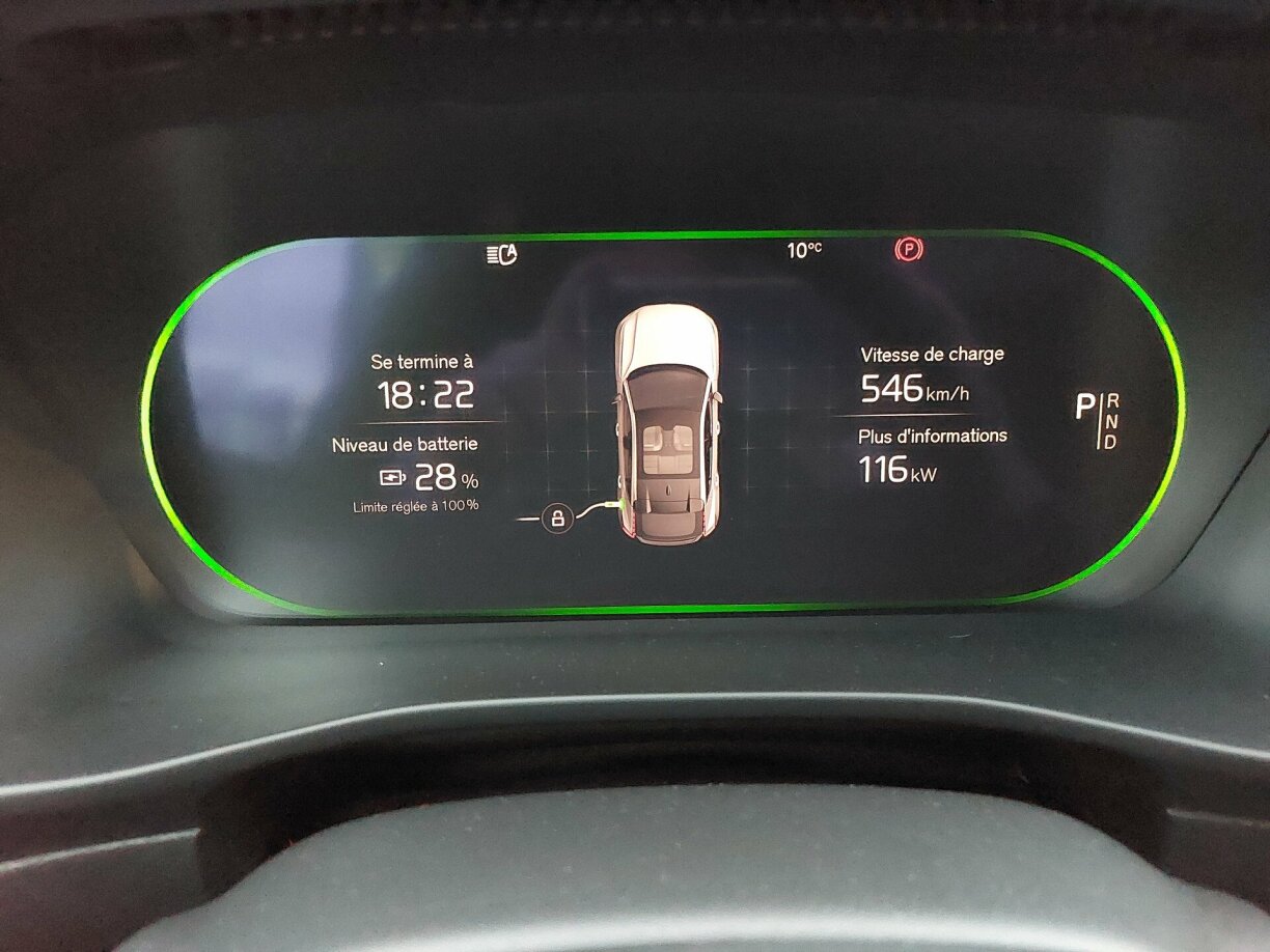 Geluede gëtt jo no Méiglechkeet mat bis zu 200kw/h. Mee um Fast Charger wou ech drun houng, déi Borne huet maximal 116 kw/h an de Volvo gezunn.