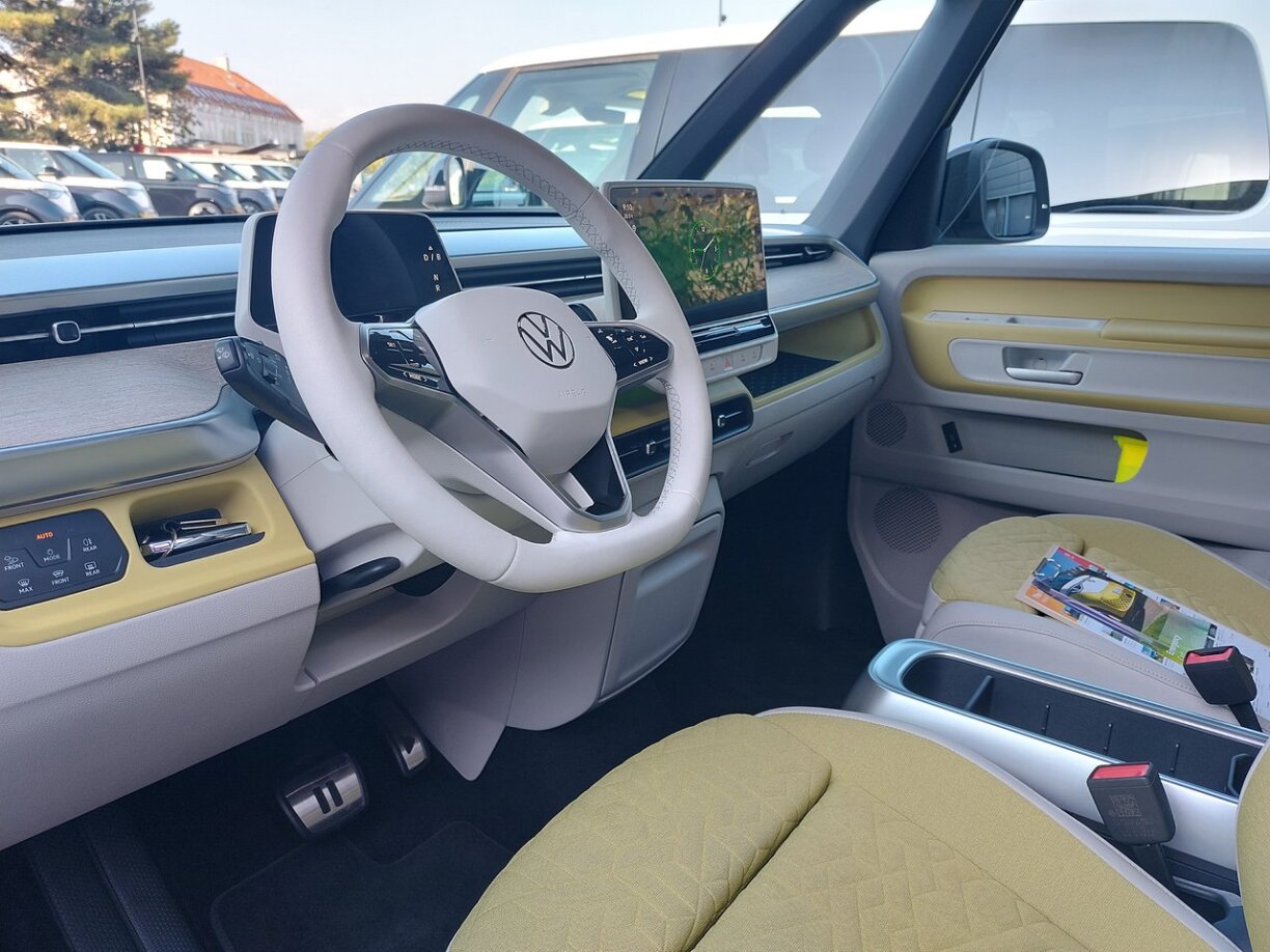 Aarmlehne fir Chauffer a Bäifuerer ginn et, vill Oflagen, a schonn no e puer Kilometer mierkt een, trotz der Gréisst, ass esou en ID. Buzz ganz maniabel. Et sëtzt een héich an d’Vue ronderëm een ass top.