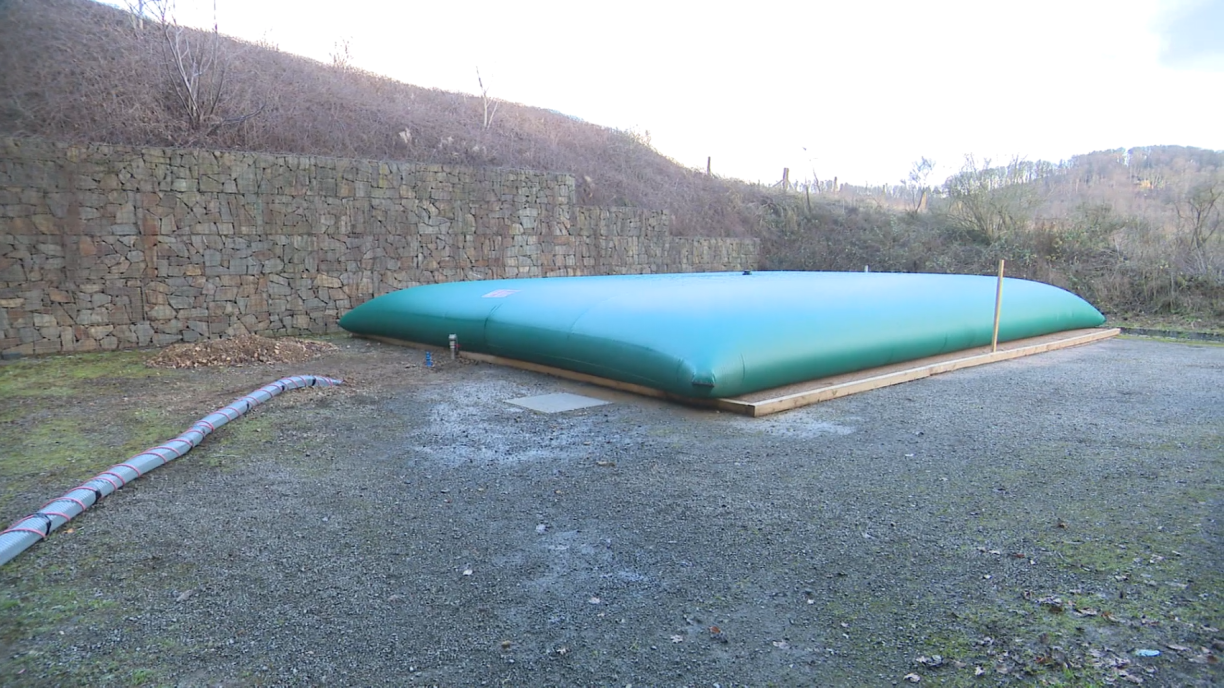 D’'Waasserreservoiren direkt nieft dem Tunnel ass antëscht installéiert. D’Alimentatioun vum Tunnel ass domat nees souwäit assuréiert.