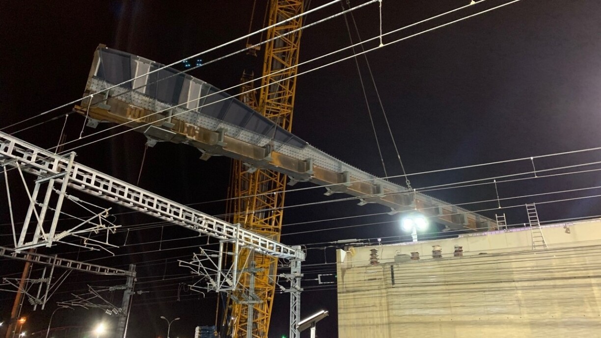 Iwwer déi nächst 3 Weekender gëtt d’Metallestruktur installéiert. An der Nuecht op de Freideg gouf domadder ugefaangen. 958 Tonne schwéier ass d’Bréck spéider, ënner anerem gi 7.700 Schrauwe gebraucht. Am Mee 2020 sollen d’Aarbechten op der Südsäit vun der Bréck ofgeschloss sinn. Duerno gëtt den Trafic op dës Säit geleet, fir un der Nordsäit ze schaffen. Op där Säit wäert vu September 2021 un den Tram fueren.