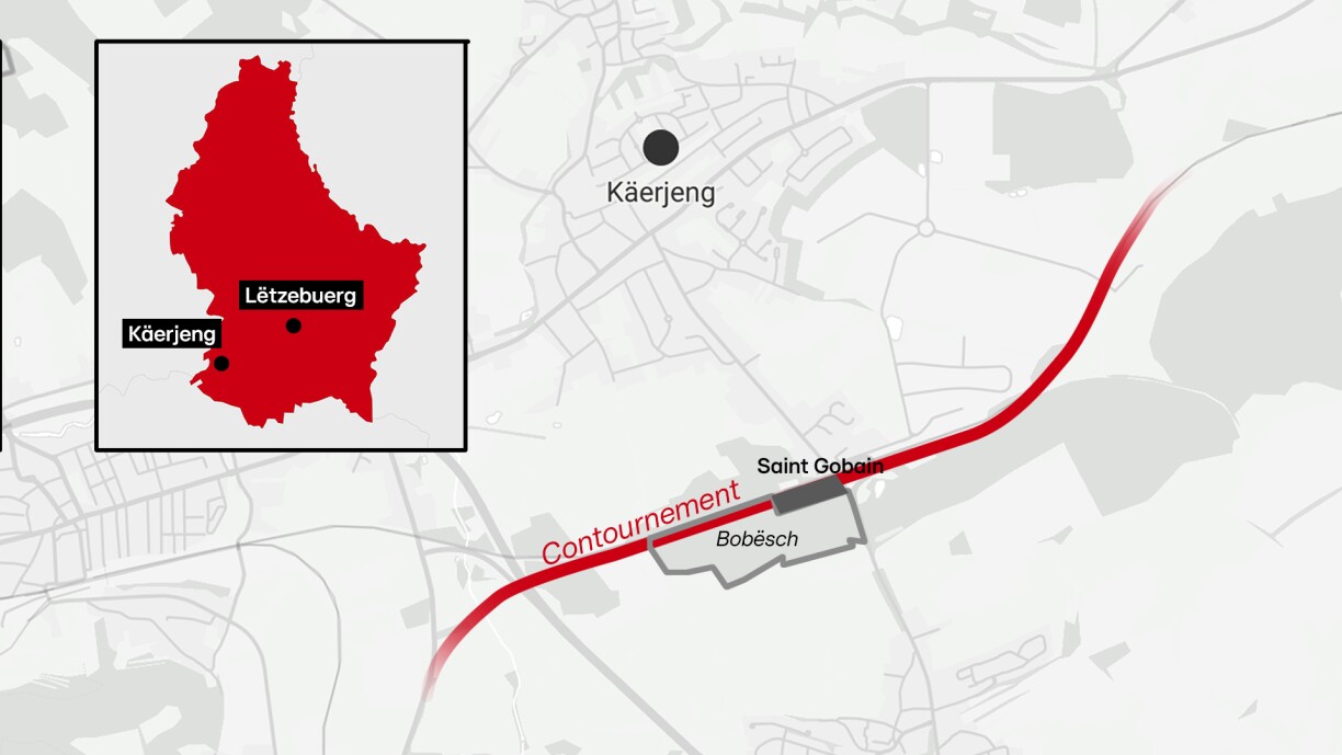 Dofir misst d’Entreprise “Saint Gobain” relogéiert ginn. Iwwer hiren Terrain soll déi nei Ëmgeeungsstrooss goen.
