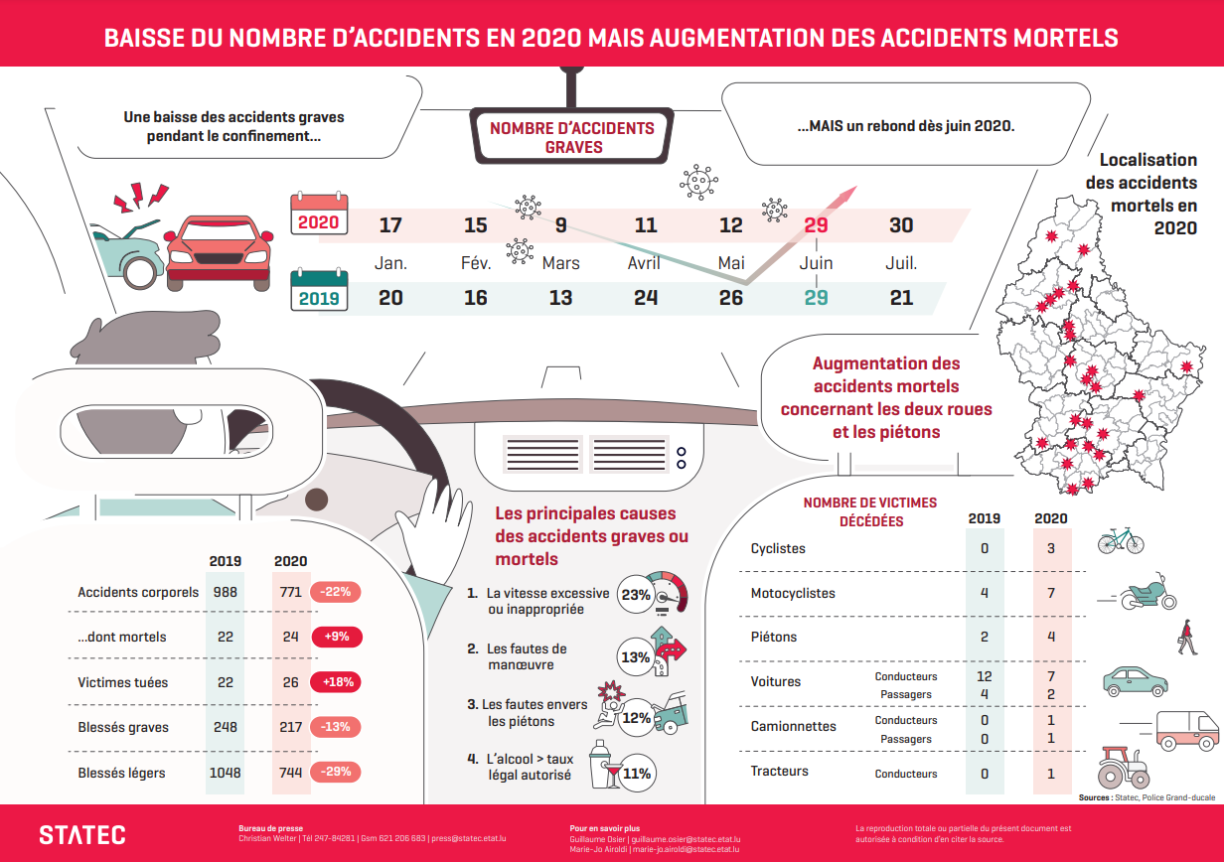 De Lockdown hätt kee sou groussen Impakt gehat, ënnert anerem, well Mäerz an Abrëll allgemeng manner Accidenter géife geschéien, wéi zu aneren Zäiten am Joer. Iwwert d’Hallschent vun den Doudegen am Stroosseverkéier ware sougenannte vulnerabel Usageren, dat heescht Foussgänger, Cyclisten a Motocyclisten, esou de François Bausch.