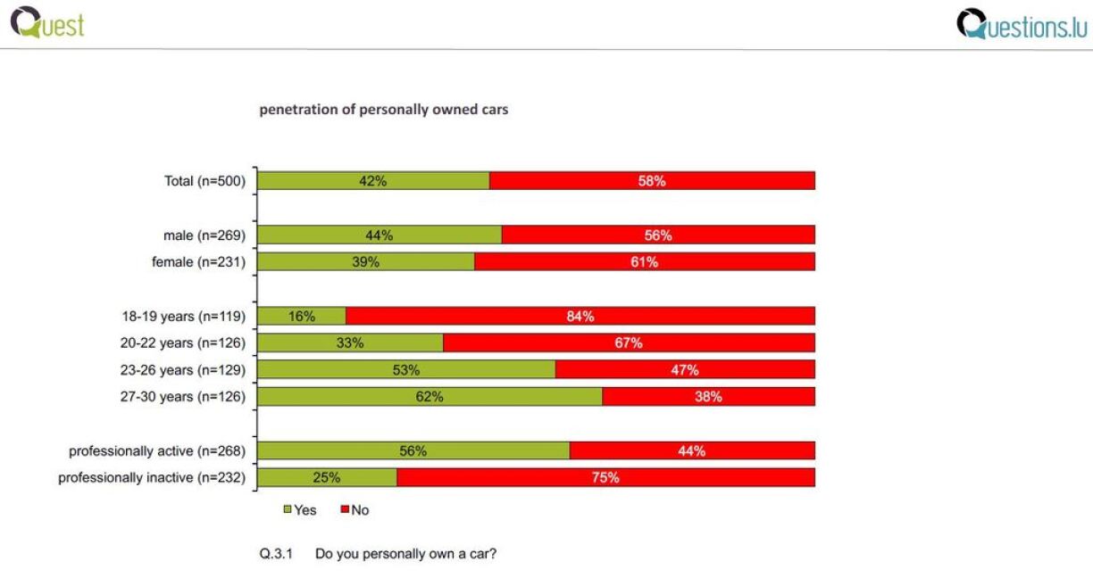 Dat geet aus engem Sondage vu Quest zum Thema Jonker an Autoen ervir. D’Maartfuerschungsfirma hat an deem Kontext 500 Jonker vu bis 30 Joer tëscht Mëtt Abrëll a Mëtt Mee ëm hir Meenung gefrot.