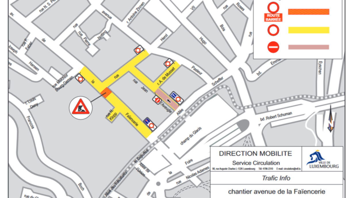 Le Service Circulation de la Ville de Luxembourg veillera à la mise en place d’une signalisation appropriée.
