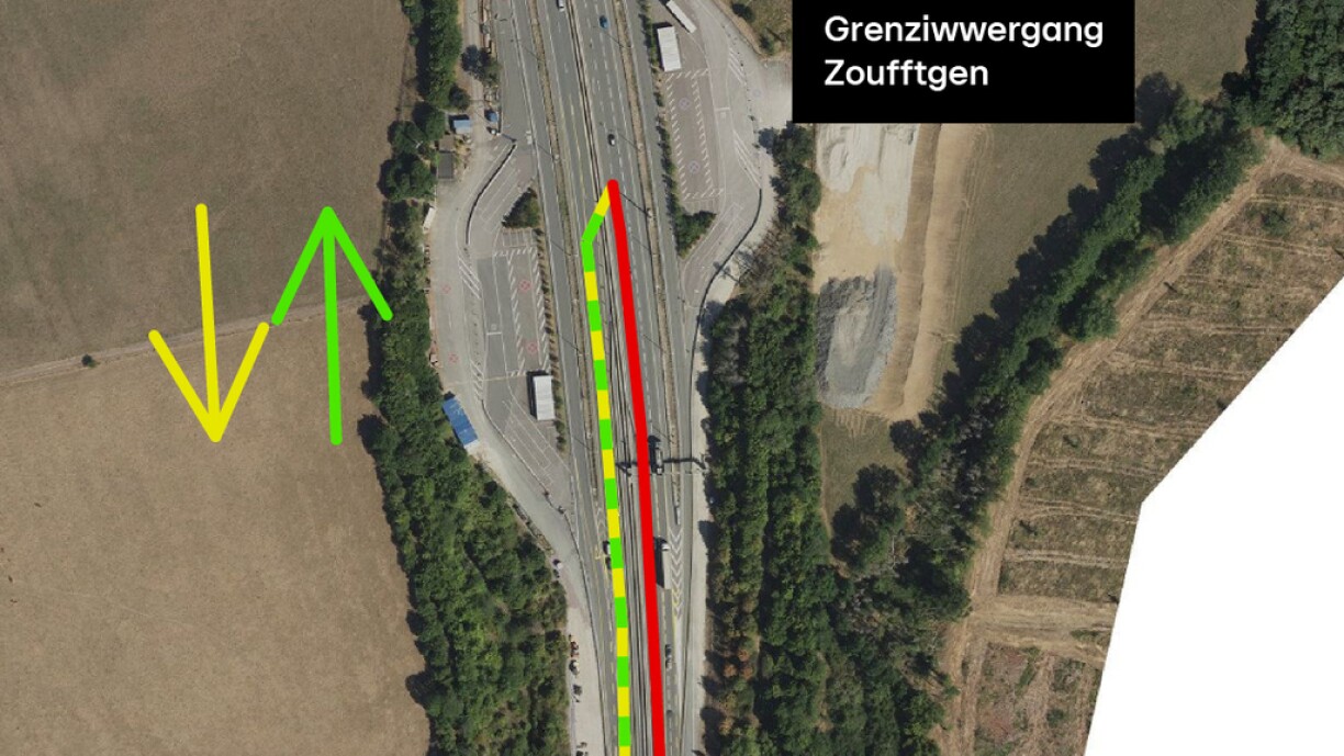 • L’autoroute A3 en direction de France entre le poste-frontière Zoufftgen et la frontière franco-luxembourgeoise.