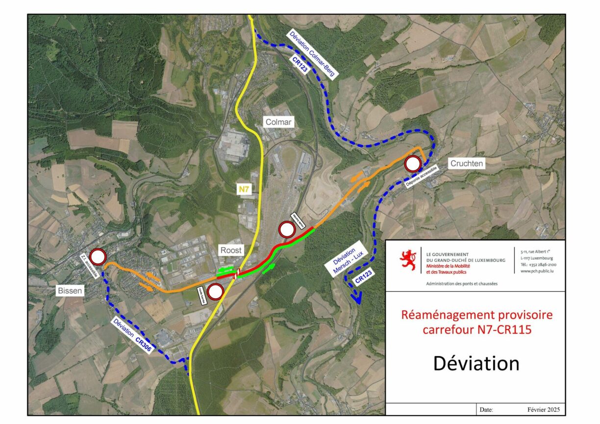 Folgend Stroosse sinn dann och wärend där Zäit gespaart: Den CR115 Rouscht/Cruchten a Richtung Rouscht an den CR115 Biissen/Rouscht a Richtung Rouscht.