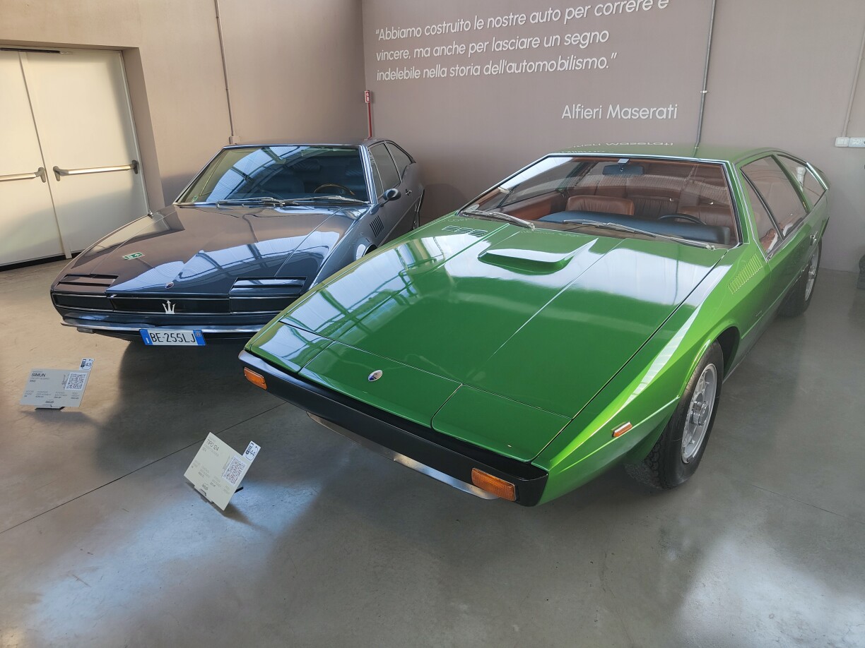 Maserati stoung awer och ëmmer fir rasseschen Design aus Italien: den A6GCS Berlinetta vu Pininfarina ass net nëmmen eent vun de wäertvollsten Exponater, mee och e perfekt Beispill fir Eleganz a Sportlechkeet, genee wéi ee vun de Virgänger vum aktuelle GranTurismo an deen éischte Maserati, deen a grousse Stéckzuele produzéiert gouf, den 3500 GT Touring. Dës Gefierer stinn am krasse Kontrast zu de Modeller aus de 70er an 80er, wou op emol Kanten a käilförmeg Linnen um Programm stoungen. Mistral, Ghibli a Merak waren deemools fir dës nei Designlinn bekannt a berüümt.