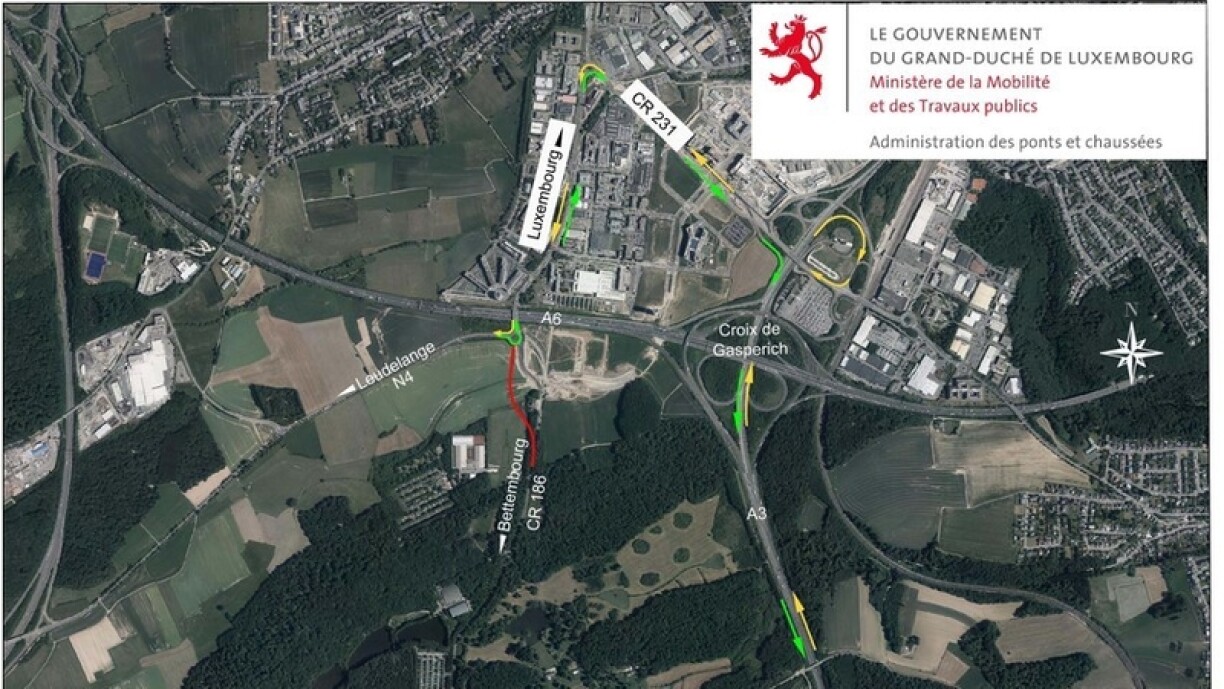Communiqué par: Administration des ponts et chausséesEn raison de la mise en place de la couche de roulement et des travaux de marquage, le CR186 sera barré dans les deux sens entre le rond-point situé sur la N4 (à hauteur du pont autoroutier) et l’entrée du centre CK à Kockelscheuer du vendredi 4 octobre à 20 heures au lundi 7 octobre 2019 à 4 heures.