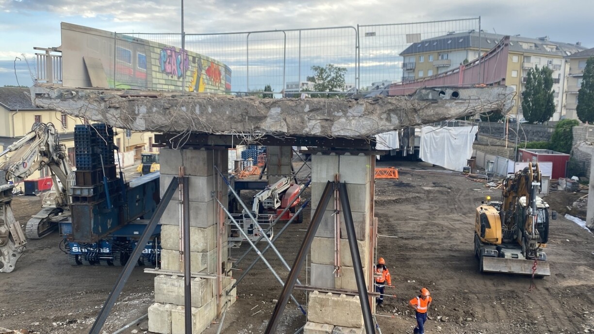 Geplangt ass dann en éischte klengen Deel vun der neier Bréck an der Nuecht vun e Sonndeg op e Méindeg op seng nei Plaz ze bréngen.