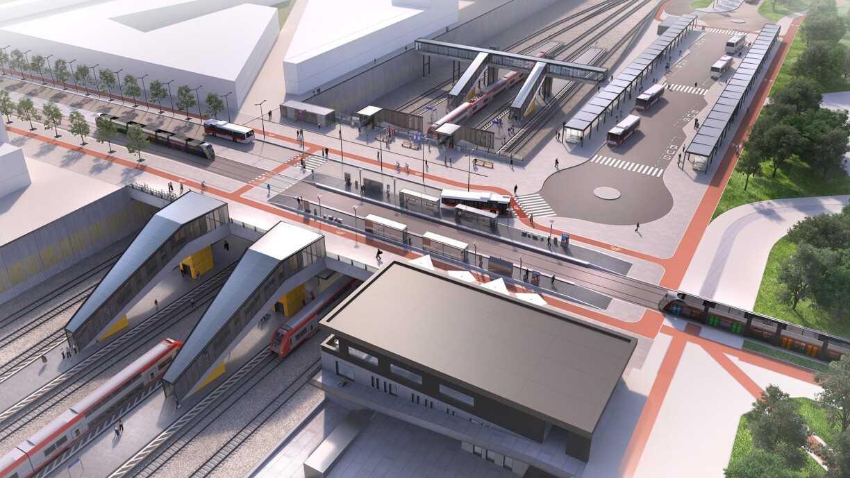 Enn 2026 soll de Pôle d’Echange Houwald prett sinn. Bis dohinner stinn awer nach eng Partie Aarbechten an d’Haus. Dës multimodal Gare soll de Besoine vun de Leit entgéintkommen. Leit, déi hei an der Géigend wunnen a fir déi, déi hei ronderëm all Dag schaffe kommen.