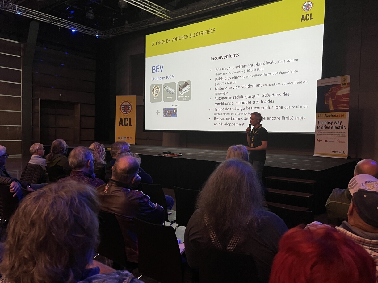 De Mëttwochowend huet sech am Tramsschapp alles ëm d’Elektromobilitéit gedréint. Ass Elektro iwwerhaapt eppes fir mech? Wéi lueden ech en op? Wéi laang hält meng Batterie? Dat sinn nëmmen e puer vun de Froen, déi 3 Experte vum ACL op enger ëffentlecher Konferenz kläre wollten. An den Interessi war grouss. Ronn 150 Leit hunn un dëser Opklärungs- a Froeronn deelgeholl.