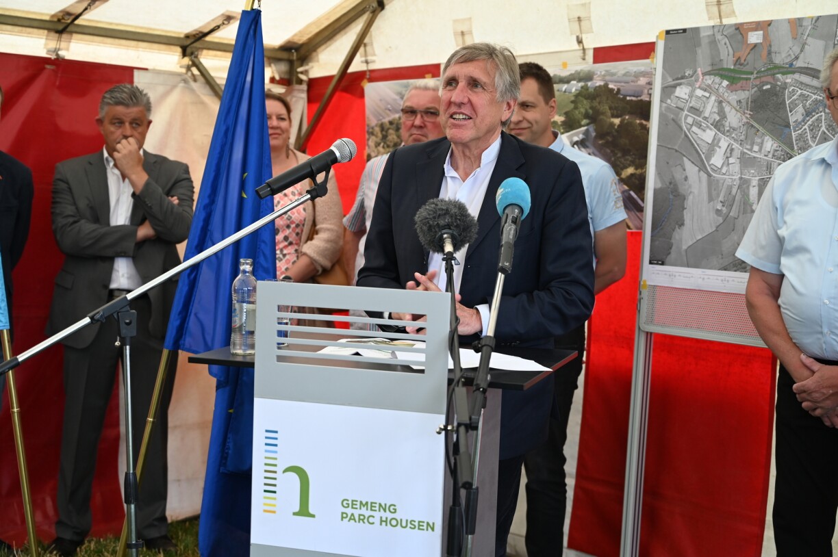 De Buergermeeschter vun der Gemeng Parc Housen, Romain Wester: “Wat mir Réckbau nennen, mengt, dass mer emol uerdentlech Trottoiren zu Housen kréien, dass mer Vëlospisten duerch Housen kréien, an dass et och méi gréng erëm gëtt. Et muss een awer och soen, doduerch dass mer vill Infrastrukturen hunn, déi duerch Housen ginn, dass mer déi dringend sanéiere mussen. Dat concernéieren d’Waasser an Ofwaasser.”