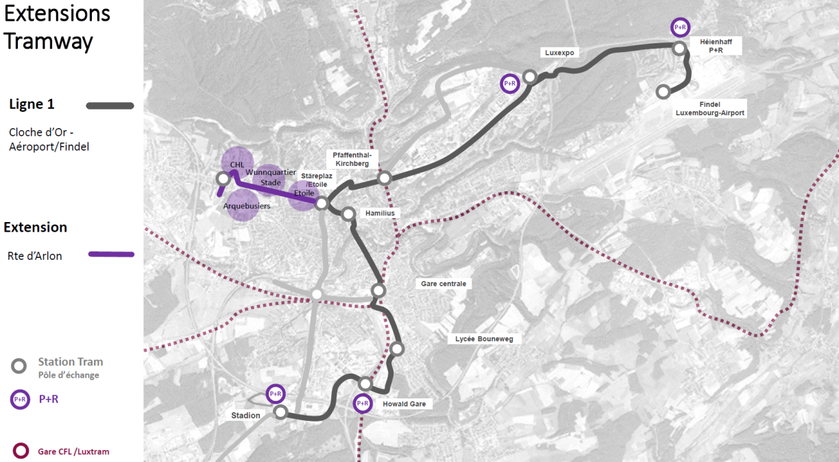 Den Tram wäert vun 2032 un déi éischt Kéier op enger Längt vu 550 Meter ënnerierdesch vun der Areler Strooss aus fueren. D‘Linn vun insgesamt 2,2 Kilometer verbënnt de Centre Hospitalier de Luxembourg (CHL) an d‘Stäreplaz . Alle 4 Arrête wäerten awer iwwerierdesch sinn.