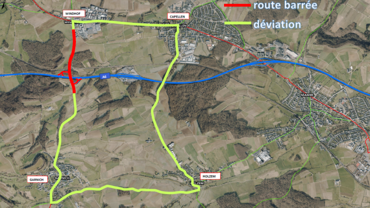 D’Geschäfter, d’Tankstell an de Zoning “Rue des Trois Cantons” um Wandhaff bleiwe wärend den Aarbechten awer accessibel. Eng Deviatioun wärend den Aarbechten ass ageriicht.