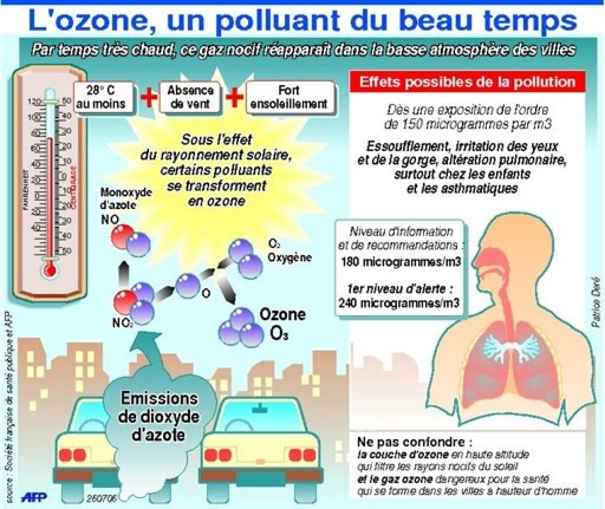 Ozon entsteet aus enger Reaktioun tëscht Sonneliicht an Ofgasen, dofir sinn d’Wäerter momentan och immens héich. Owes gi se da liicht erof. Déi Limitatioun soll mat sech bréngen, datt manner Ofgasen an d’Atmosphär erakommen. Esou entsteet och manner Ozon.