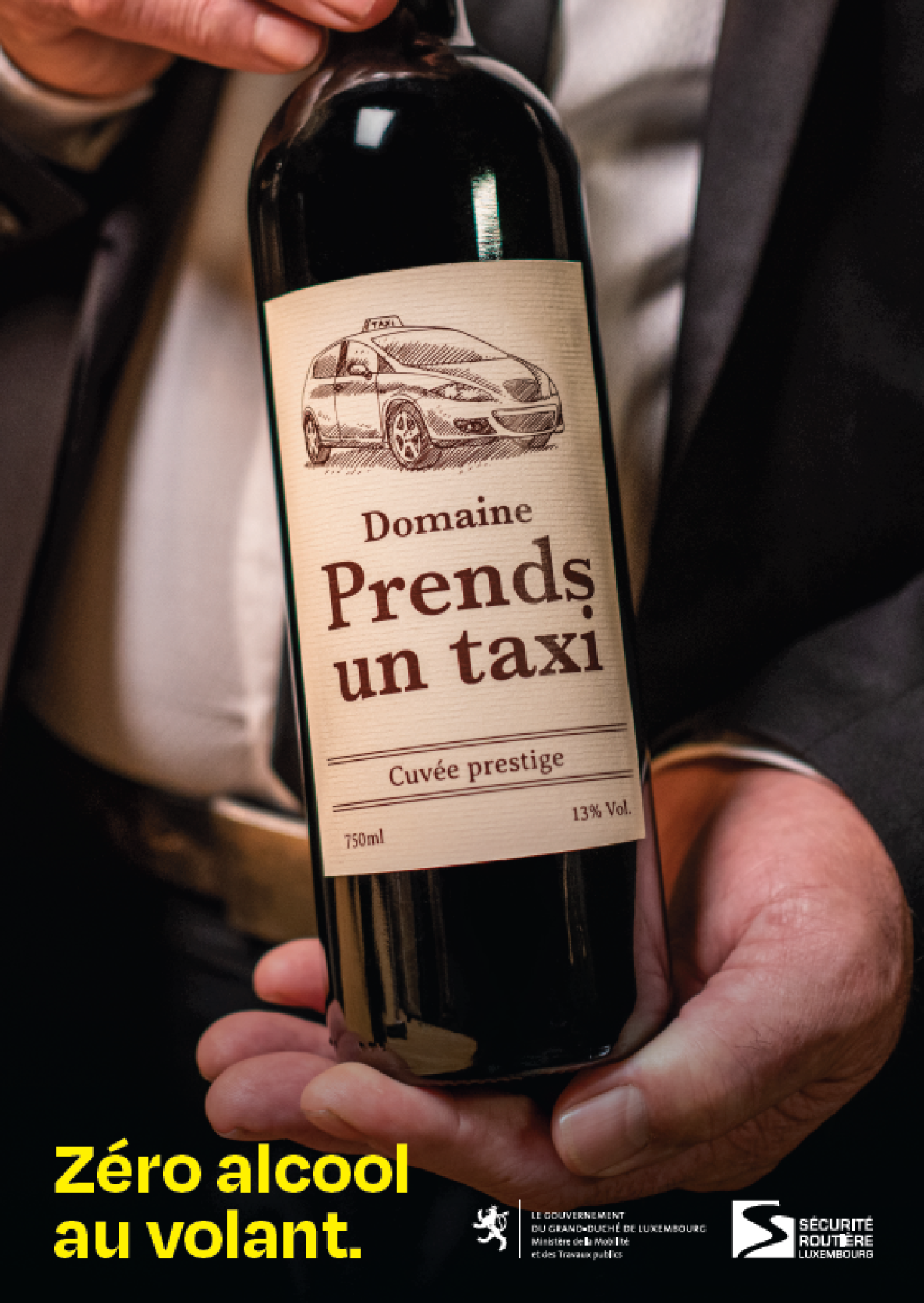 “Alkohol um Steier ass no ze héijer Vitess ëmmer méi dacks de Grond fir schwéier an déidlech Accidenter”, betount de Gréngen Transportminister François Bausch. Dofir gouf an der Sensibilisatiounscampagne dëst Joer dëse Sujet cibléiert. Op Plakater, um Internet, um Radio oder a Spotts op der Tëlee an am Kino gëtt probéiert, mat Béier oder Wäifläschen Opmierksamkeet ze kréien.