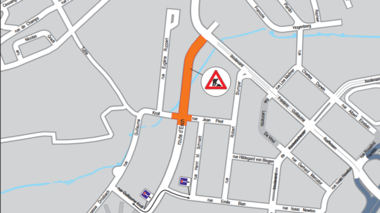 Barrage à toute circulation de la rue Guillaume Kroll sur le tronçon compris entre la rue Eugène Ruppert et la route d’Esch.