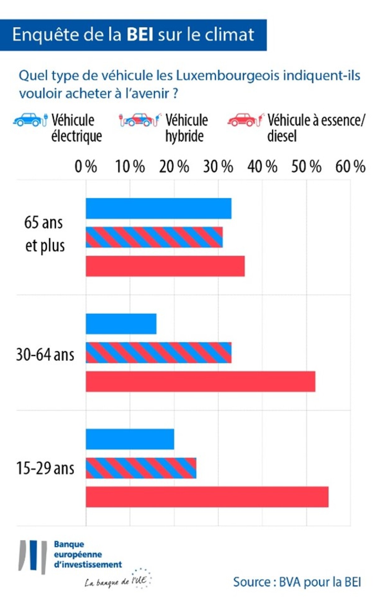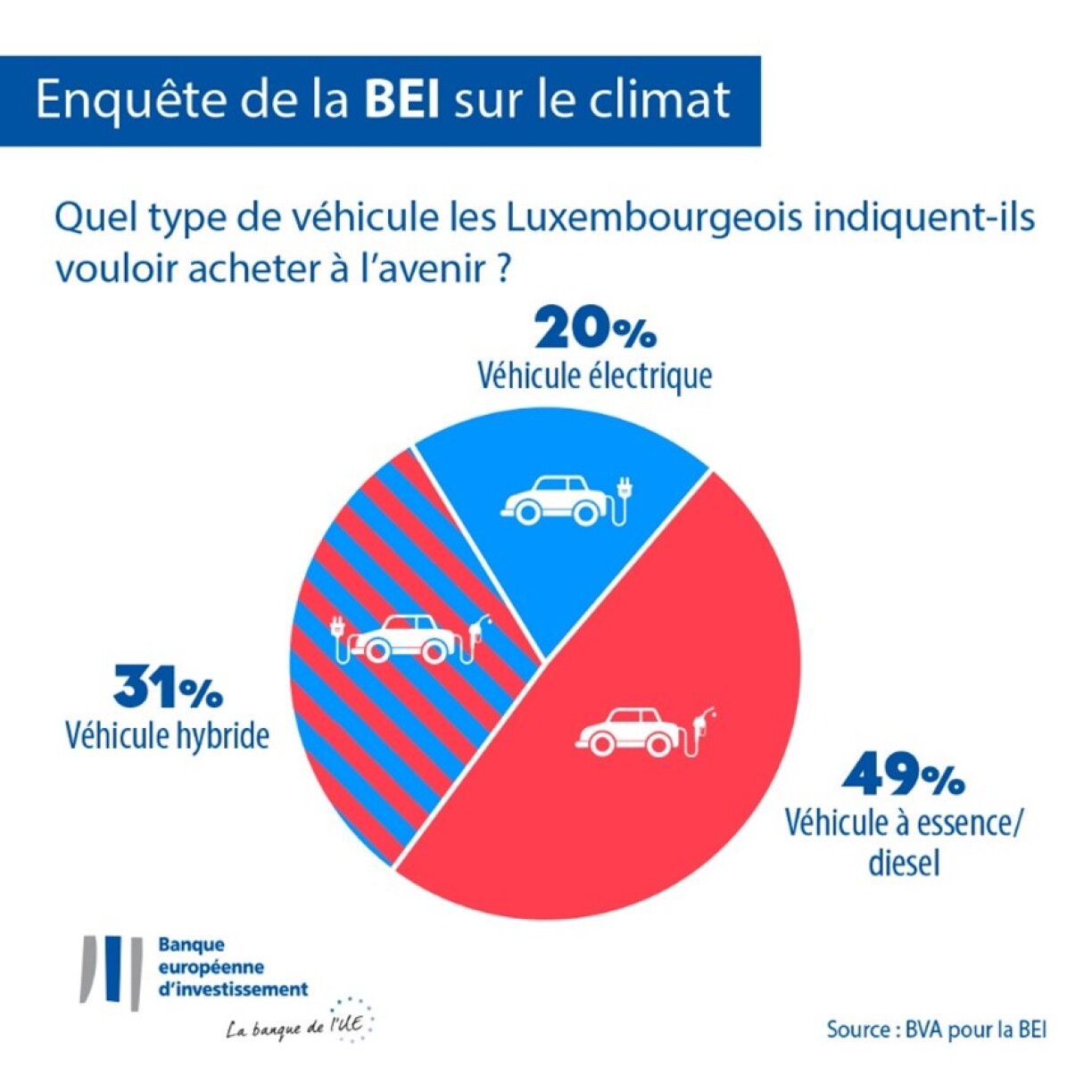 51% vun den Awunner am Land, déi an Zukunft en neien Auto wëlle kafen, soen, datt dëst en Hybrid- oder Elektro-Won wäert ginn. Dat si 16 Punkte manner wéi d’europäesch Moyenne an dëser Fro.