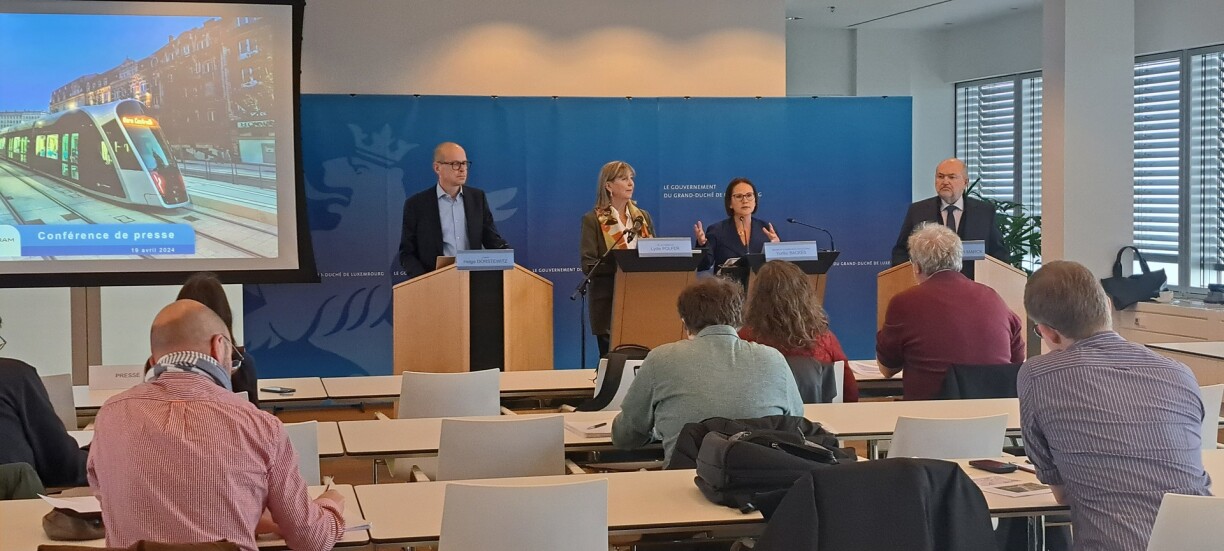 Vum nächste Joer u soll den Tram d’Haaptstad mam Flughafe verbannen. Déi nächst Arrêten, déi a Betrib geholl ginn, sinn d’Gare um Houwald an de Stadion. Vum 7. Juli u sollen d’Leit hei den Tram kënnen huelen, dat war um Freideg op enger Pressekonferenz gewuer ze ginn.