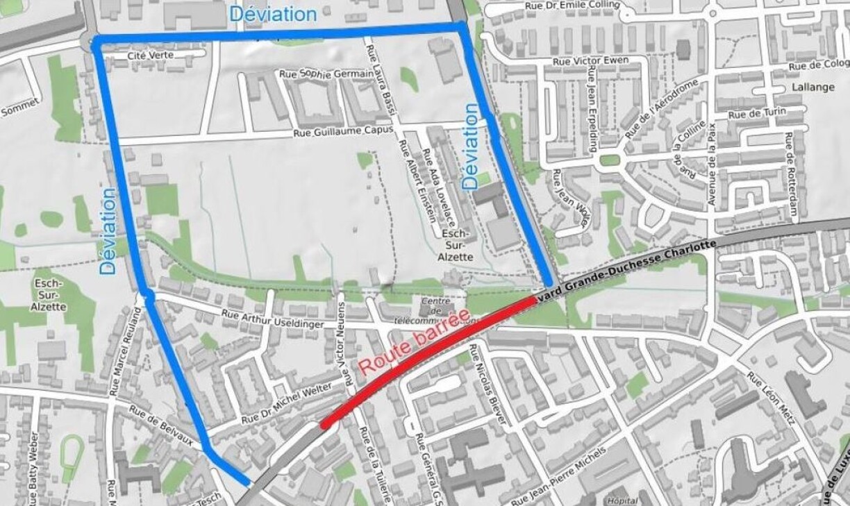 D’Pénétrante Lalleng ass dann och wärend der Schoulvakanz gespaart, et kënnt een net méi vum Boulevard Aloyse Meyer a Richtung Boulevard Pierre Dupong respektiv d’Escher Autobunn.