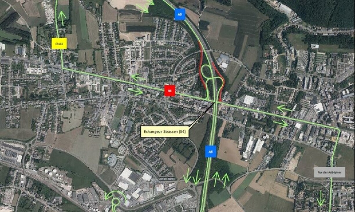 Den Trafic vun der N6 gëtt iwwert d’Rue des Aubépines an d’N5 op d’Helfenterbréck geleet, wou een dann nees op d’Autobunn kënnt.