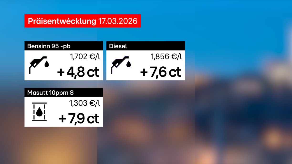 Nodeem den Diesel an de Masutt nach e Freideg e bësse méi gënschteg goufen, klammen d’Präisser vu béiden elo eng weider Kéier. Beim Diesel ass et e Plus vu 7,6 Cent de Liter, deen elo 1,856 Euro kascht. De Masutt klëmmt op 1,303 Euro pro Liter, wat e Plus vu 7,9 Cent ass.