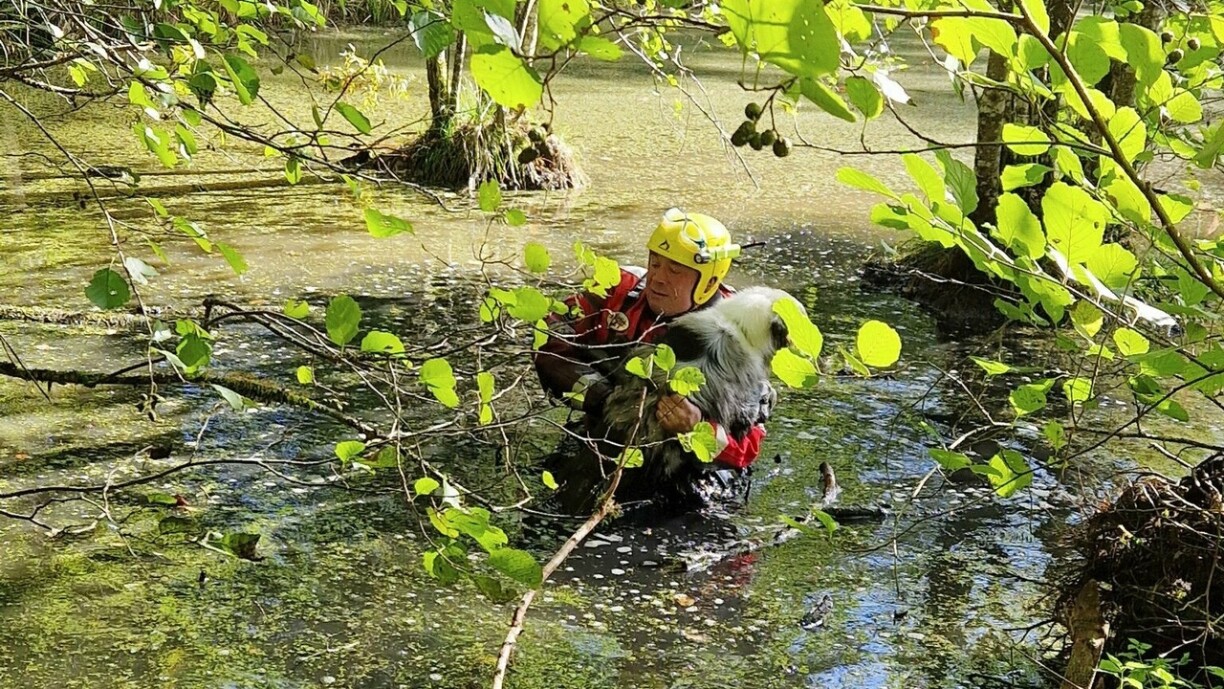 Een Hond war op sengem Spadséiergang e bëssen ze begeeschtert vu sengem Ëmfeld an huet sech vun der Lénkt gerappt. Hien ass an ee Mouer gesprongen, mee huet séier gemierkt, datt en net méi eleng zeréck un d’Ufer bei säi Besëtzer kennt. Den naasse Mupp huet sech dunn op eng kleng Insel eng 5 Meter weider fort gerett, an do op Hëllef gewaart.