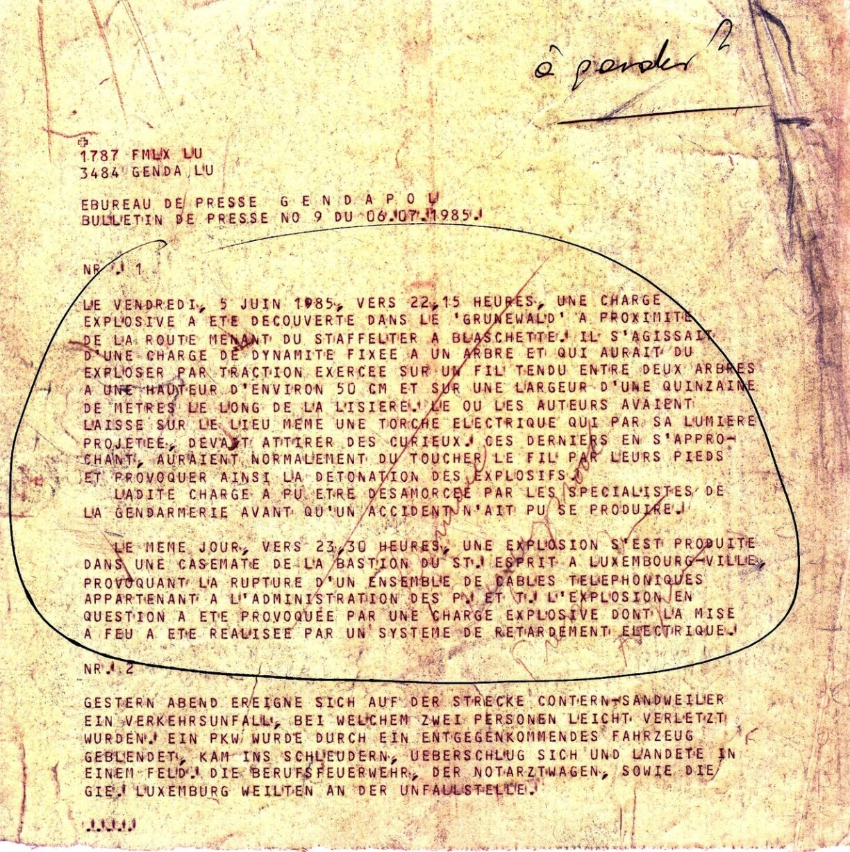 Summer 1985: Zu Lëtzebuerg explodéieren d’Bommen, an de Summerméint sinn et der 8, notamment déi an de Kasematten, de 5. Juli. Annerhallef Stonn virdrun war zu Asselscheier eng Sprengfal, e Booby-trap fonnt an entschäerft ginn.