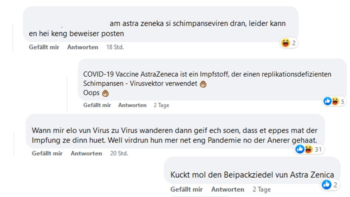 Wéi een et hei an de Kommentare liese kann, soll de Coronavirus-Impfstoff AstraZeneca Schold sinn um Ausbroch vun den Afepouken. Dës Theorie baséiert sech dorop, dass bei der Entwécklung vum AstraZeneca-Impsfstoff mat engem Schimpansen-Adenovirus geschafft gouf. Dëst ass och an der Produktbeschreiwung vum Impfstoff nozeliesen.