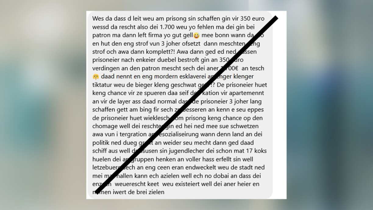 Ufank Februar hat sech eng Persoun bei RTL gemellt, déi sech driwwer beschwéiert huet, datt d’Detenuen am Prisong “modern Sklave” wieren. Wéi de Mann eis matgedeelt huet, verdéngen d’Prisonéier ronn 350 Euro de Mount an déi aner 1.700 Euro géif de Patron sech an d’Täsch stiechen. “Da leeft d’Firma jo gutt, gell”, esou ee vu senge Virwërf. RTL huet dat bei der Prisongsverwaltung nogefrot.