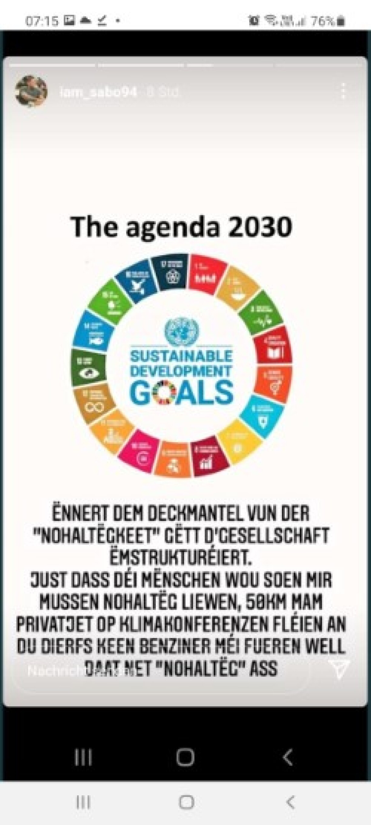 Hannert dem Pseudonym “iam_sabo94" verstoppt sech eng Persoun, déi een ëmmer erëm un der Front vun den Anti-Vaccin-Maniffe gesäit.
