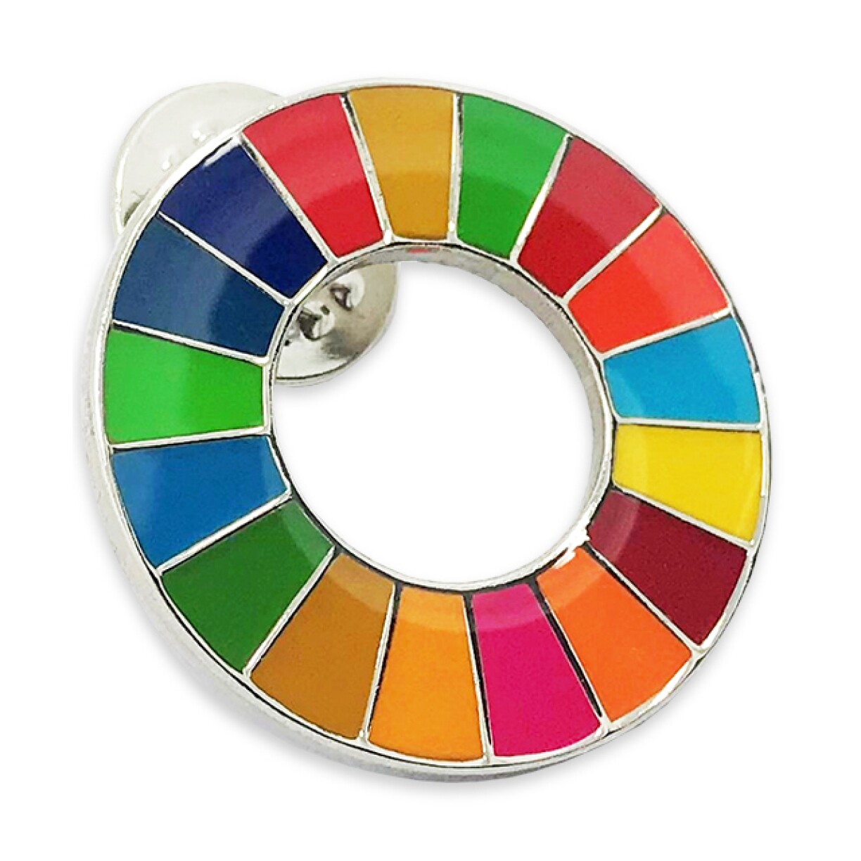 Beim Pin, dee verschidde Ministeren zënter Ugangs 2020 droen, an deen op dëse Fotoen ze gesinn ass, handelt et sech ëm de sougenannten “SDG Pin” vun der Uno. SDG steet fir “Sustainable Development Goals”. Dat ass d’Symbol vun den Ziler, déi all Memberlänner vun de Vereenten Natioune sech bis 2030 gesat hunn, fir eng nohalteg Entwécklung. All Faarf ass een Zil: 17 Faarwen, 17 Ziler.