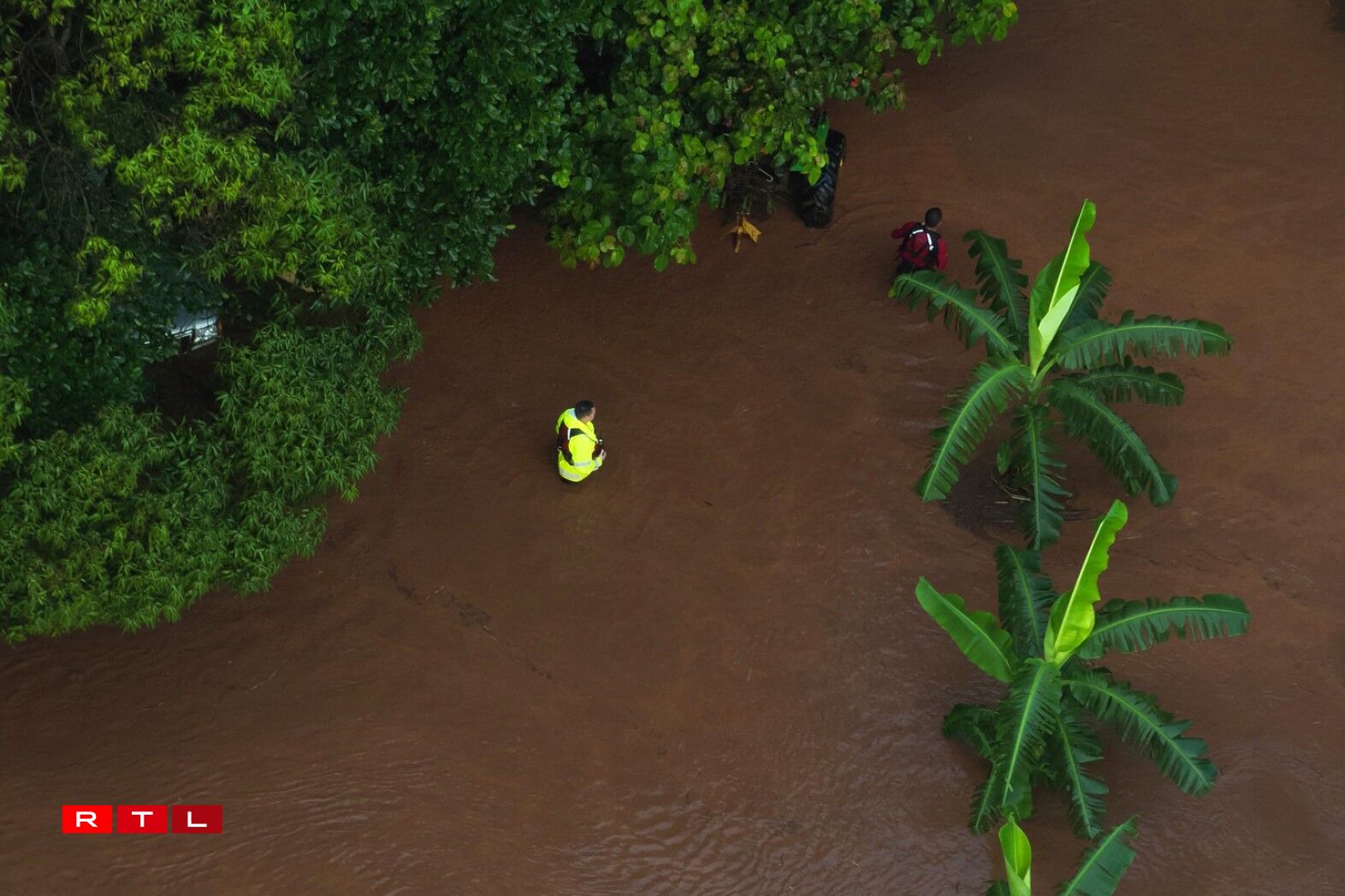 Bis ewell wier et awer nach net zu engem trageschen Doudesfall komm, esou de Spriecher vun der Gemeng Honolulu weider. Et koumen awer verschidden Noutriff, well Leit duerch d’Waassermasse isoléiert goufen an hu missten aus hirer mësslecher Situatioun gerett ginn. D’Waasser war zum Deel esou staark, datt et Autoe vun Awunner einfach matgerappt huet.