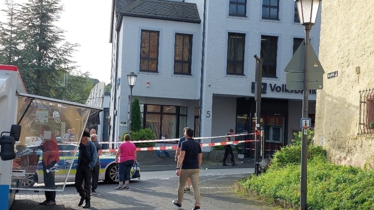 Wéi um Presseportal vun der däitscher Police ze liesen ass, huet en Zeien observéiert, wéi zwee maskéiert Täter an de Virraum vun der Bankfilial agedronge sinn. En drëtten Täter hätt baussen an engem Auto ma Bitburger Plack gewaart. No der Sprengung vum Bankomat sinn d’Täter du geflücht. No hinne gëtt den Ament ëmmer nach gesicht.