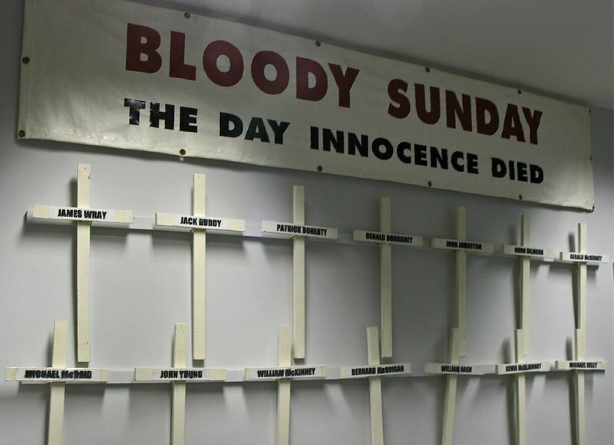 Den 30. Januar 1972 hunn eng 10.000 Bierger zu Londonderry géint déi brittesch Internment-Politik (déi direkt Inhaftéierung, ouni Geriichtsprozess, vu suspekten ireschen Nationalisten) demonstréiert.