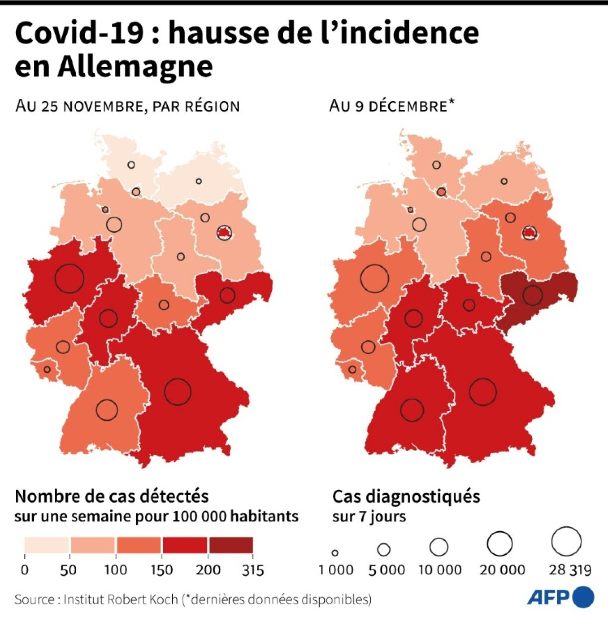 Vun e Méindeg u kéint an Däitschland nees e komplette Lockdown en place gesat ginn. Ëmmer méi Bundeslänner, dorënner Bayern, fuerderen nämlech een haarde Lockdown nach viru Chrëschtdag. Et sollt haut an net eréischt muer eng Decisioun geholl ginn.