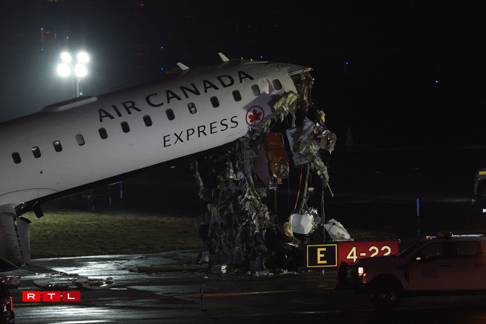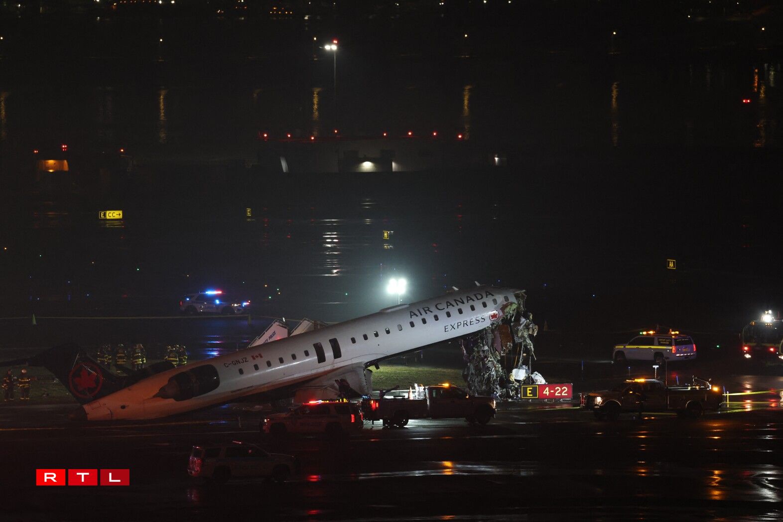 Bei der Kollisioun tëscht engem Fliger vun Air Canada an engem Läschwon um Fluchhafe LaGuardia zu New York sinn US-Medien no zwee Leit ëm d’Liewe komm. De Pilot an de Co-Pilot vun der Maschinn sinn deemno gestuerwen. Dem Fernseesender ABC no goufen donieft op d’mannst 13 Leit blesséiert an d’Spidol bruecht. Dorënner 11 Passagéier vum Fliger an déi zwee Beamten, déi am Läschwon souzen.