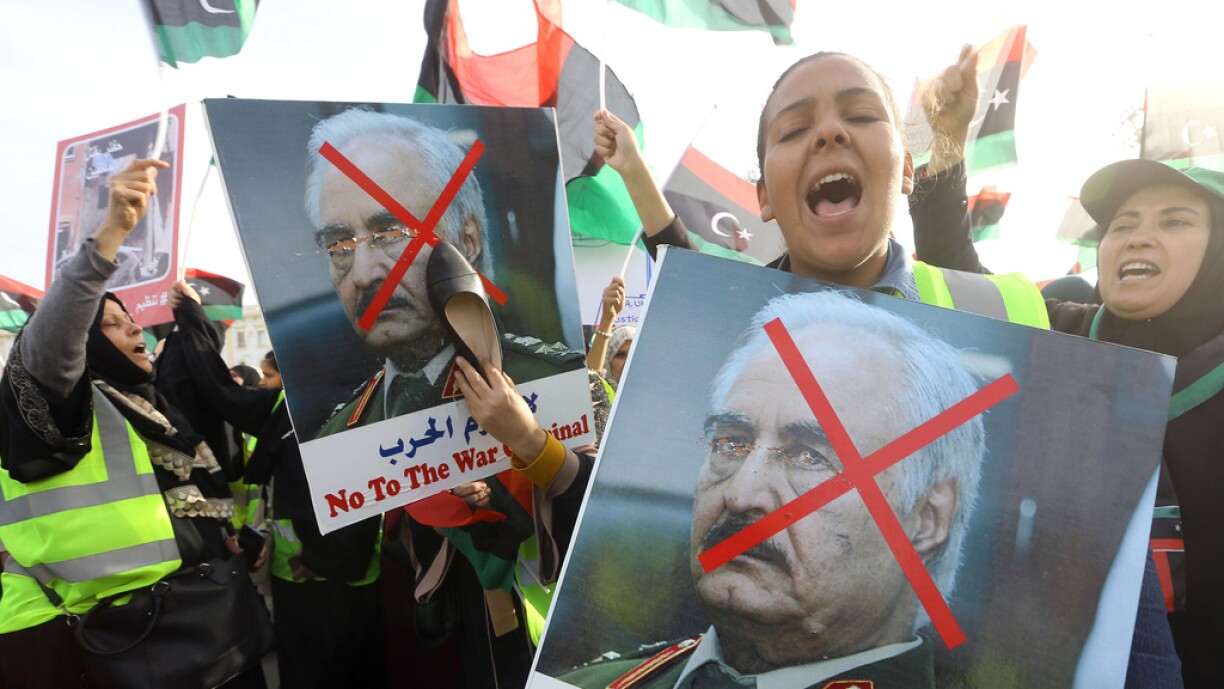 A Libyen ass zanter e komplette Chaos zanter deem den al-Gaddafi 2011 gestierzt gouf. Ufank Abrëll hat de Generol eng Offensiv op d’Haaptstad Tripolis lancéiert, wou d’Regierung hire Sëtz huet. Hie selwer ënnerstëtzt eng Géigeregierung am Oste vum Land.