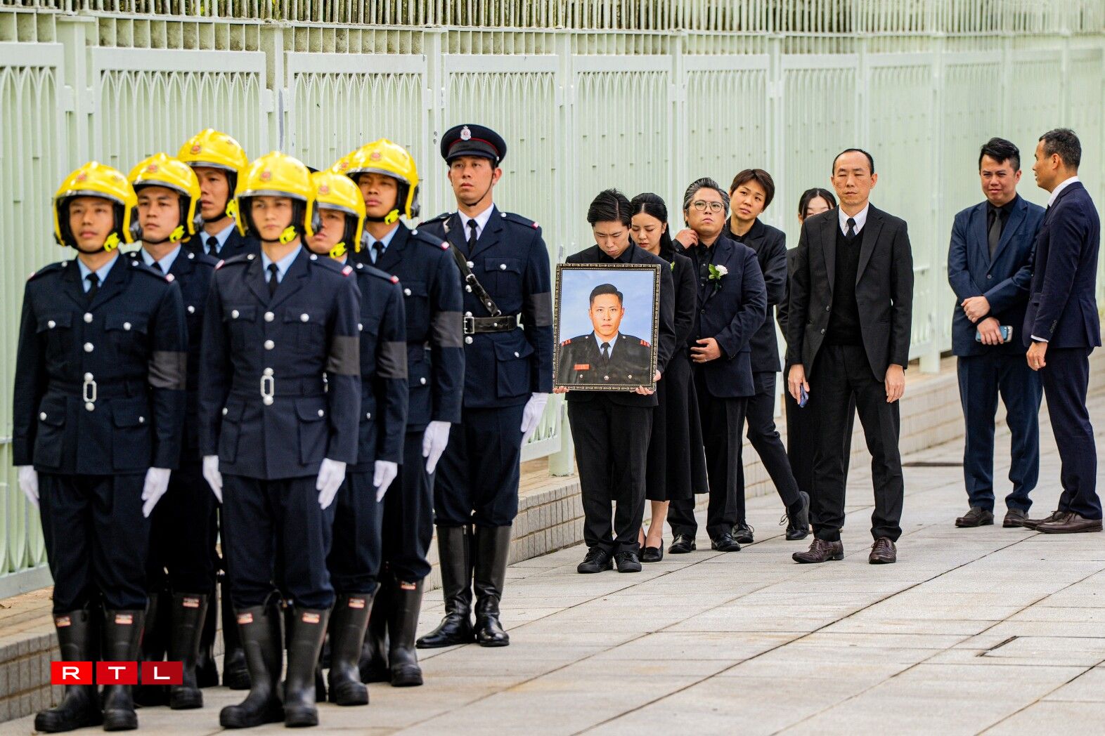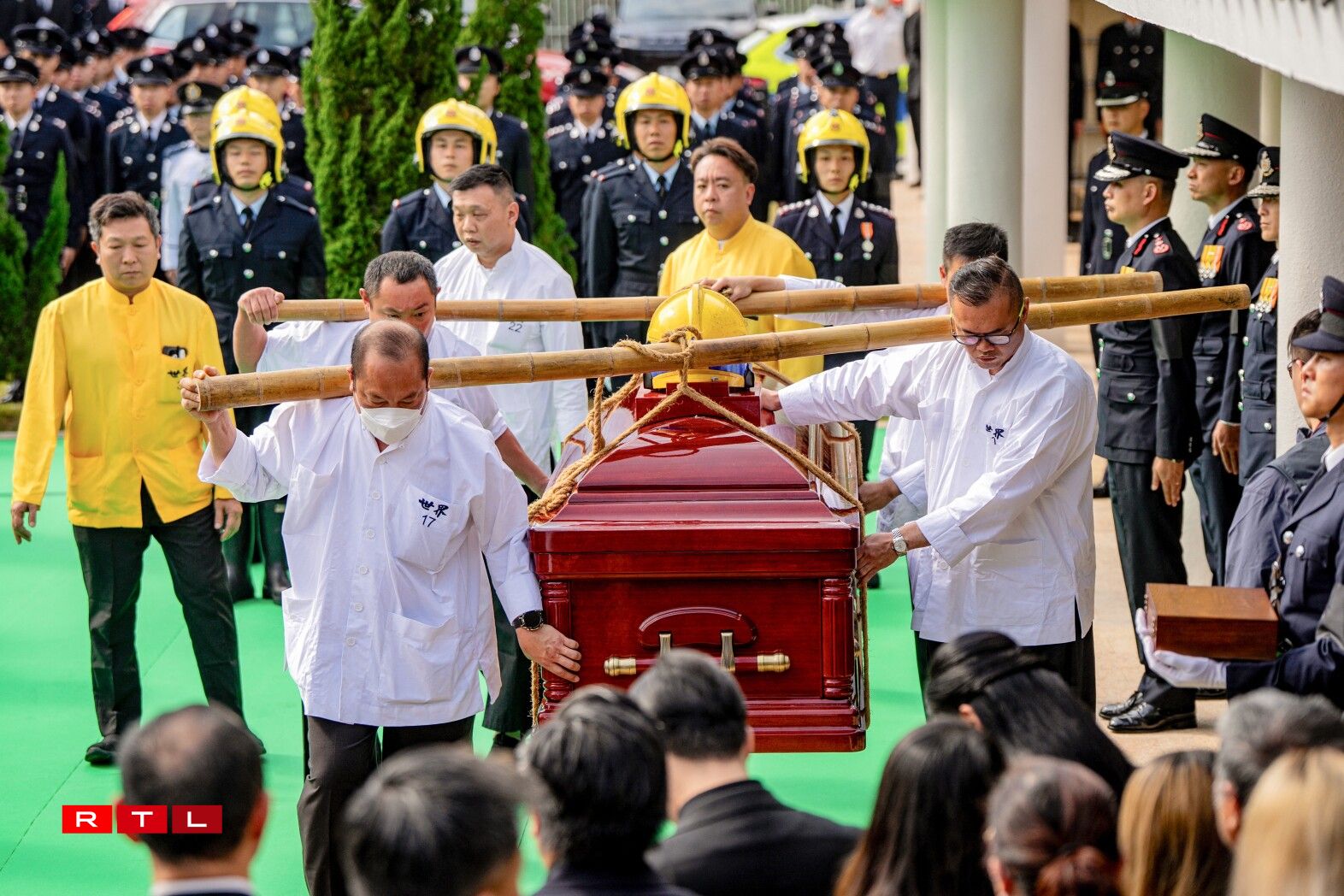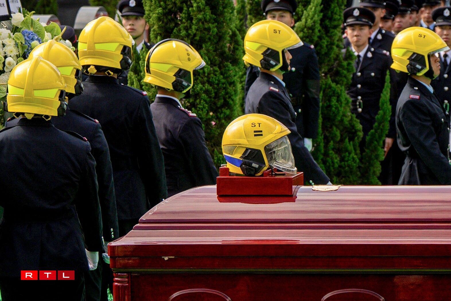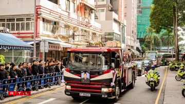 De Sarg vum 37 Joer alen Ho Wai Ho, deen am Fändel vun Hongkong agewéckelt war, gouf mat enger Zeremonie op de Kierfecht bruecht, wou e puer vun de Kolleegen hir Tréinen net zréckhale konnten.