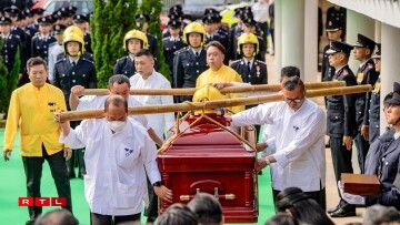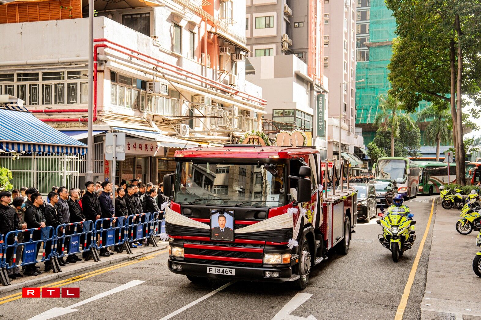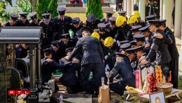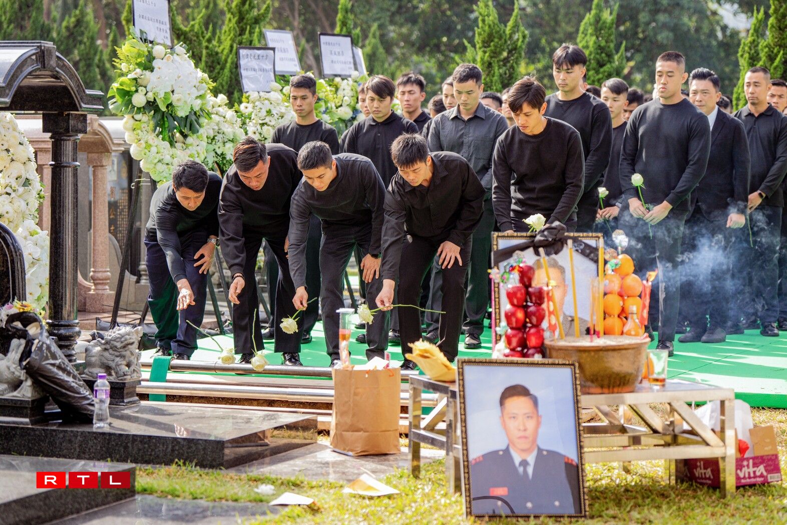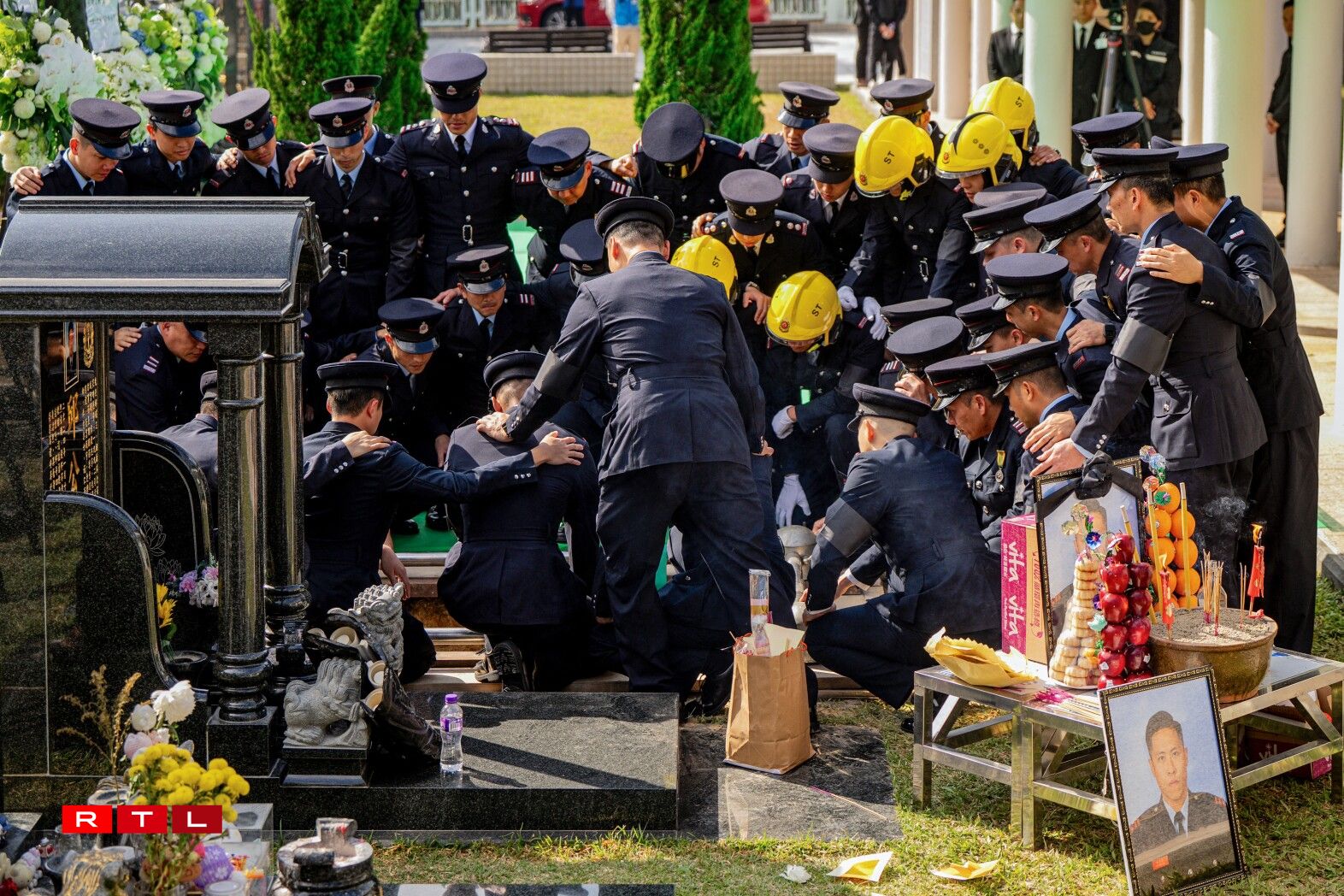 De Sarg vum 37 Joer alen Ho Wai Ho, deen am Fändel vun Hongkong agewéckelt war, gouf mat enger Zeremonie op de Kierfecht bruecht, wou e puer vun de Kolleegen hir Tréinen net zréckhale konnten.