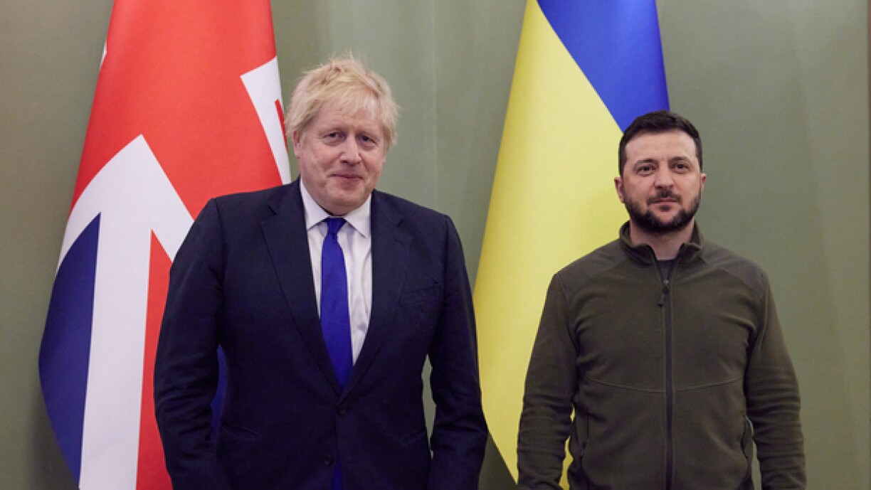 Iwwerraschungsvisitten dann och e Samschdeg zu Kiew beim ukrainesche President Wolodymyr Selenskyj. De brittesche Premier Boris Johnson gouf ageflunn, fir seng Ënnerstëtzung zum Ausdrock ze bréngen, awer och den éisträichesche Bundeskanzler Karl Nehammer.