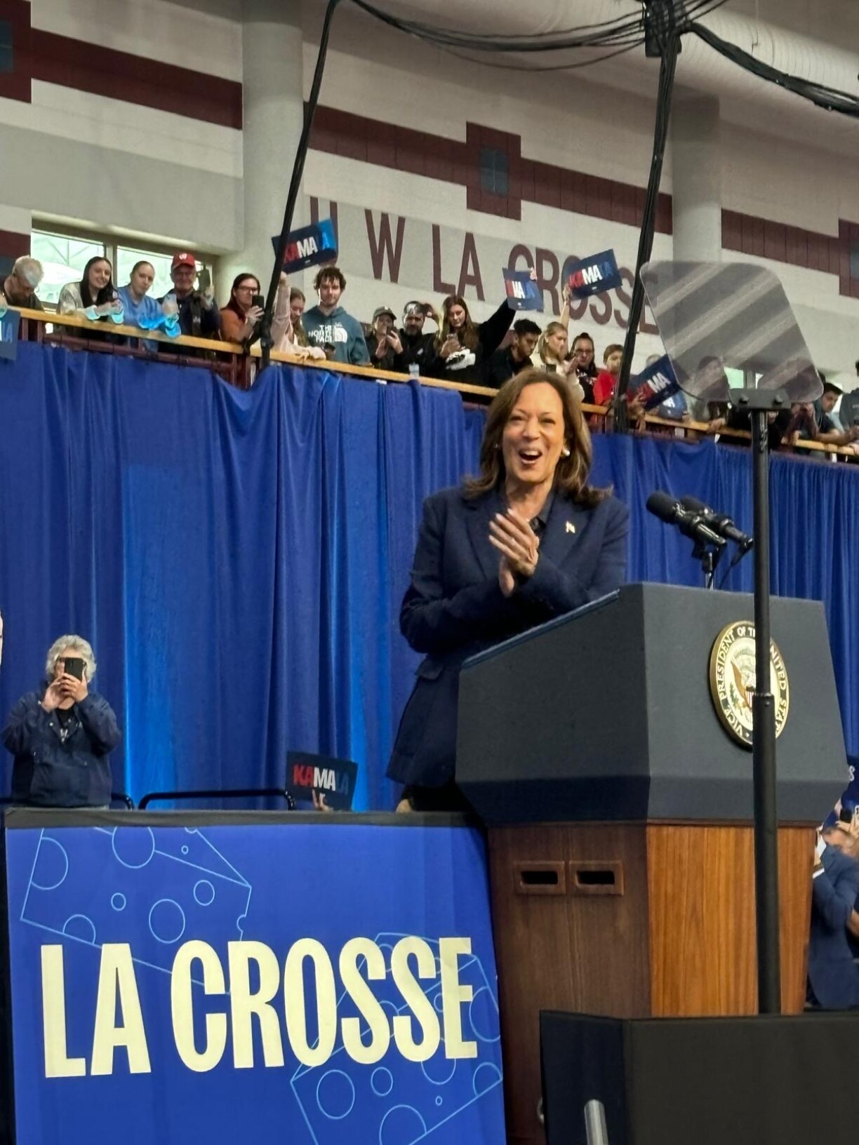 Den 18. Oktober war och ewell d’Kamala Harris zu La Crosse, deemools haten d’Bagniewskien et voller Freed bis ganz no vir an d’"Front Row” gepackt, fir “hir” Kandidatin ze ënnerstëtzen.