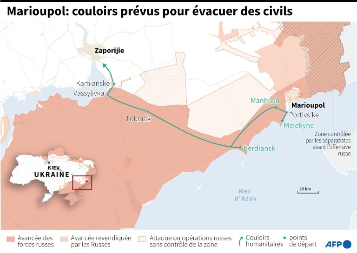 Mariupol um Azov-Mier gëtt zum ukrainesche Guernica. De russesche Militär an de Kommando am Kreml schéngen eng komplett Zerstéierung vun der Stad unzestriewen, dersonner gëtt ee sech net zefridden, ouni Matleed fir d’Zivilpopulatioun, déi nach ëmmer keng weider Waffepaus kritt, fir z’evakuéieren. Dem ukrainesche Militär no wier d’Stad zu 80% zerstéiert an d’humanitär Situatioun wier katastrophal.