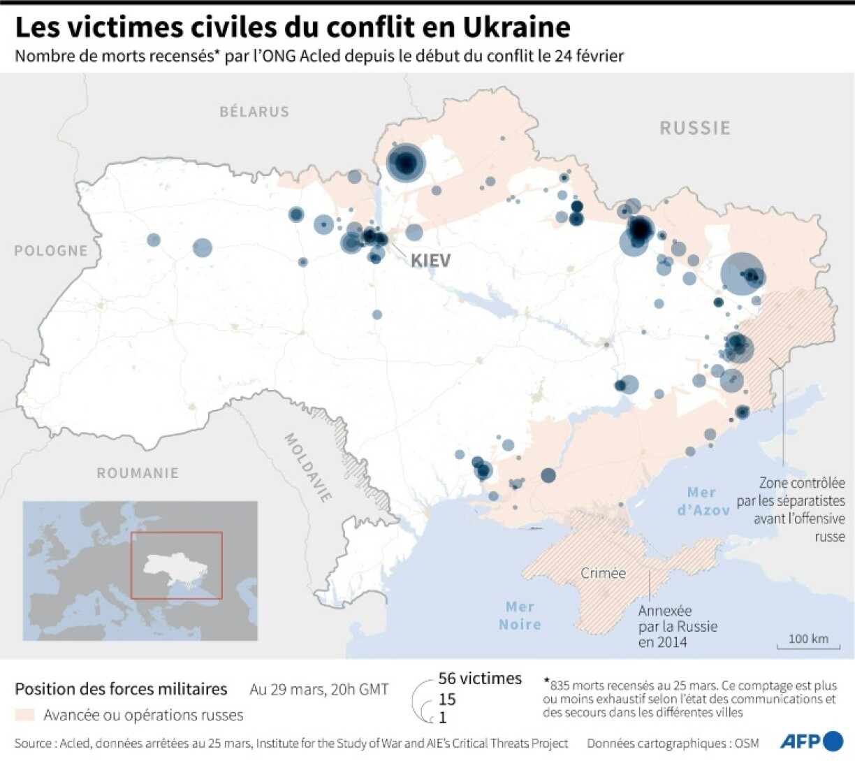 Wärenddeem sech d’Situatioun an der Haaptstad Kiew e bëssen entspaant, ass et der ukrainescher Arméi gelongen d’Stad Cherson um schwaarze Mier zeréckzëerueweren. D’Russen haten d’Stad virun 3 Woche komplett ageholl. Hei kéinten elo Liewensmëttel a Medikamenter un d’Awunner verdeelt ginn. D’Ukrainer hate gefaart, dass Moskau zu Cherson am Ëmgéigend eng russlandtrei Volleksrepublik wéilt grënnen, déi sech änlech wéi d’Separatistegebidder Donezk a Luhansk, vun der Ukrain géifen ofsoen.