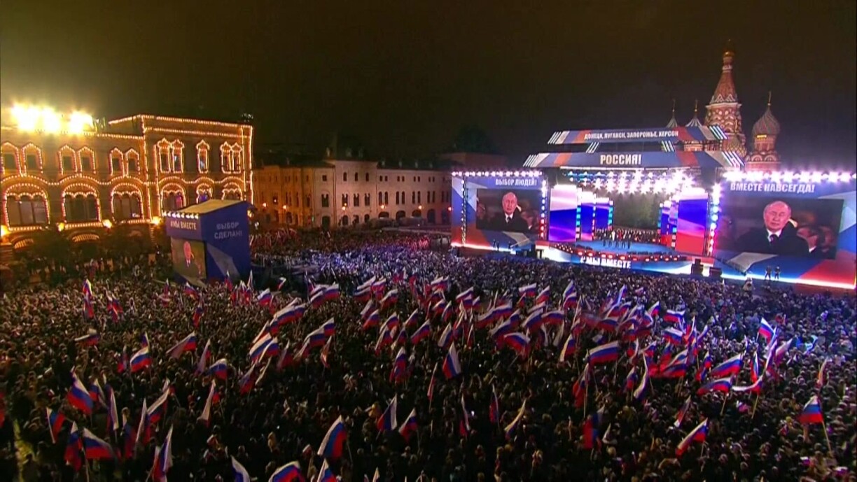 Zéngdausende Leit waren e Freideg no der Annexiounsproklamatioun op der Rouder Plaz zu Moskau zesummekomm, fir déi illegal Vergréisserung vum Territoire vun hirem Land ze feieren, déi zu der internationaler Isolatioun vun hirem President féiert. D’Abiergerung vun zwee ukrainesche Verwaltungsbezierker an zwou imaginäre Volleksrepublike wor eng nationalistesch Manifestatioun, déi soll d’Eenheet hannert der Muecht ënnersträichen iwwerdeems Dausenden all Dag d’Land verloossen.