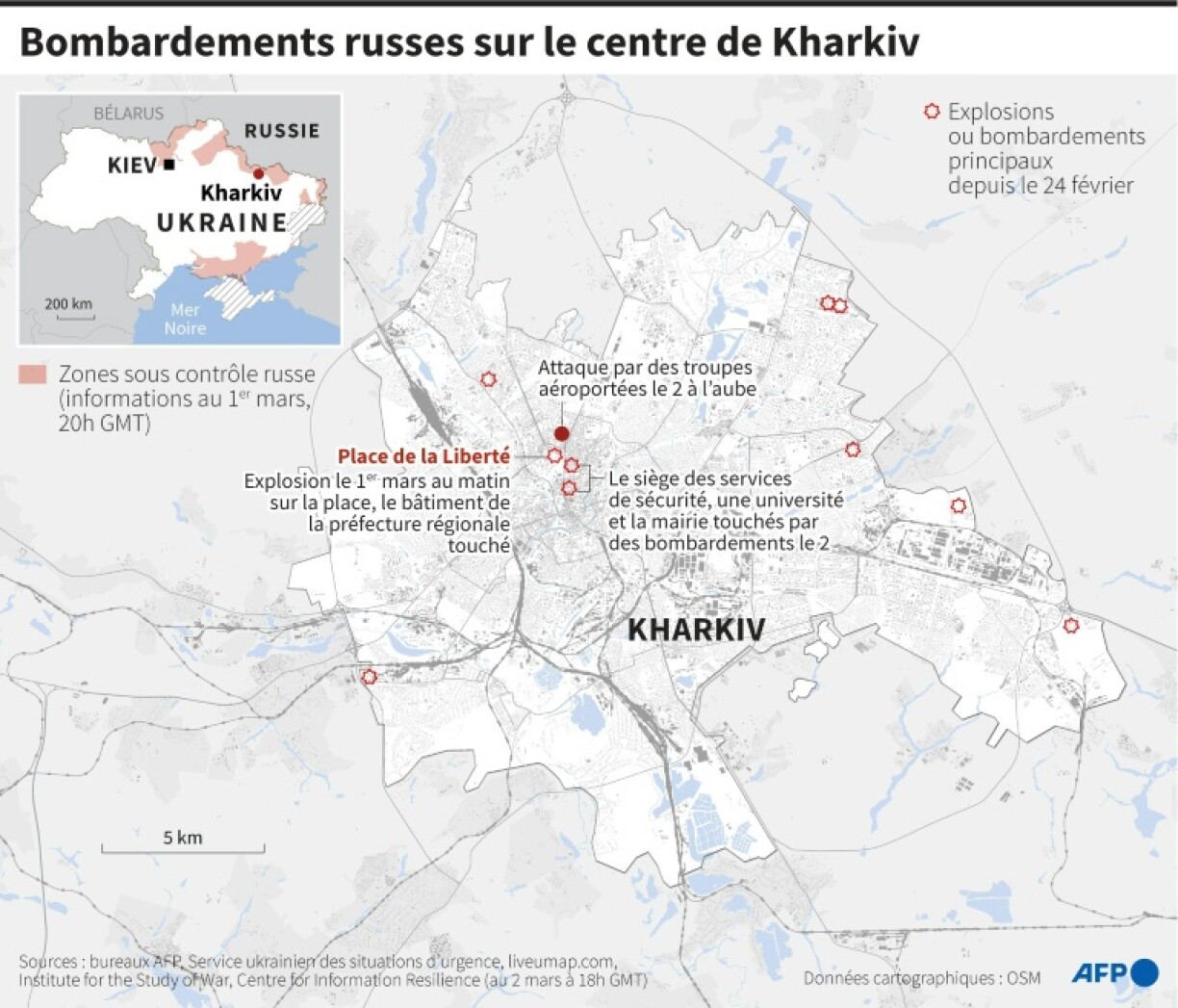 An der Peripherie ronderëm d’Haaptstad halen deels uerg Kämpf tëscht russeschen an ukraineschen Truppen weider un.
