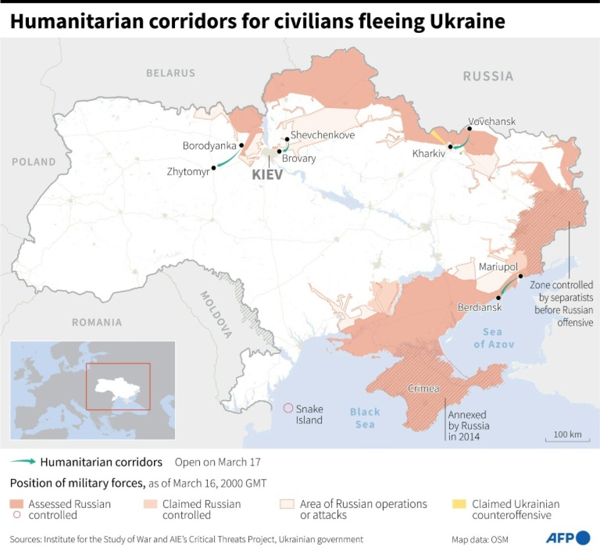 Ganz uerg ass d’Situatioun weider och zu Mariupol am Süden. Déi russesch Buedemtruppen wären do an tëscht am Zentrum, heescht et vun der russescher Säit. Déi ukrainesch Forcen si ronderëm d’Auer domat beschäftegt, Zivilisten aus der Stad erauszekréien. Och haut sinn nees Fluchtkorridoren geplangt.